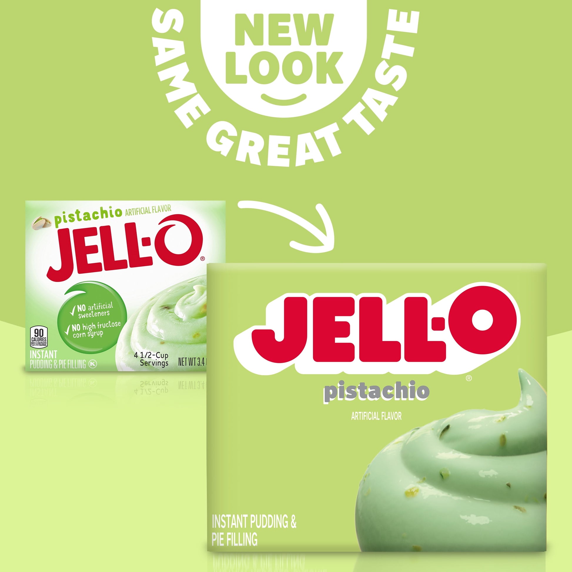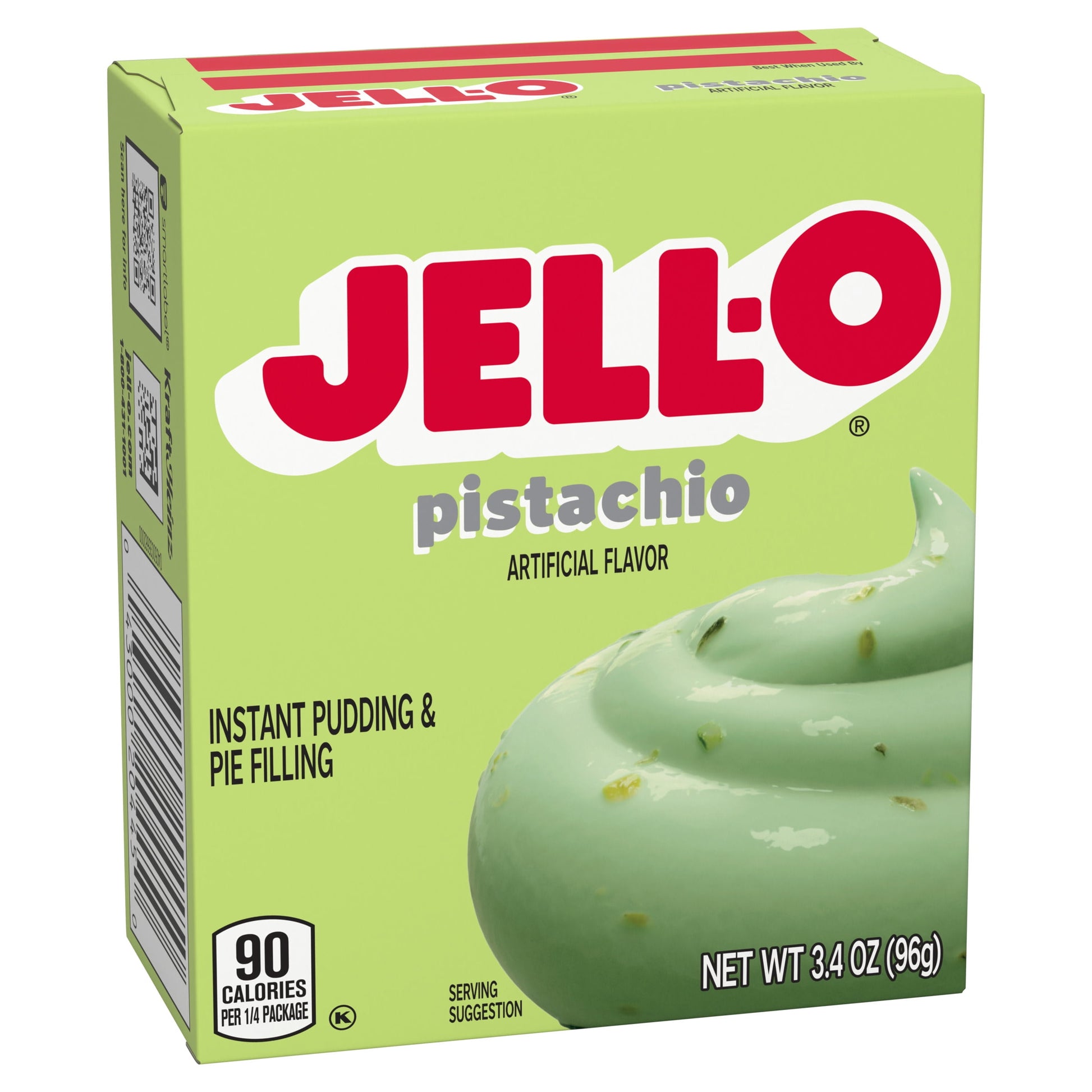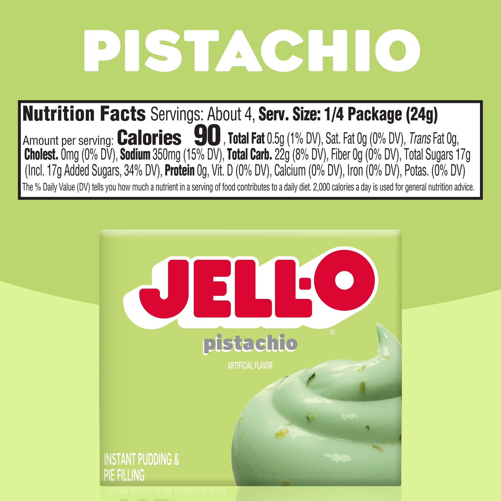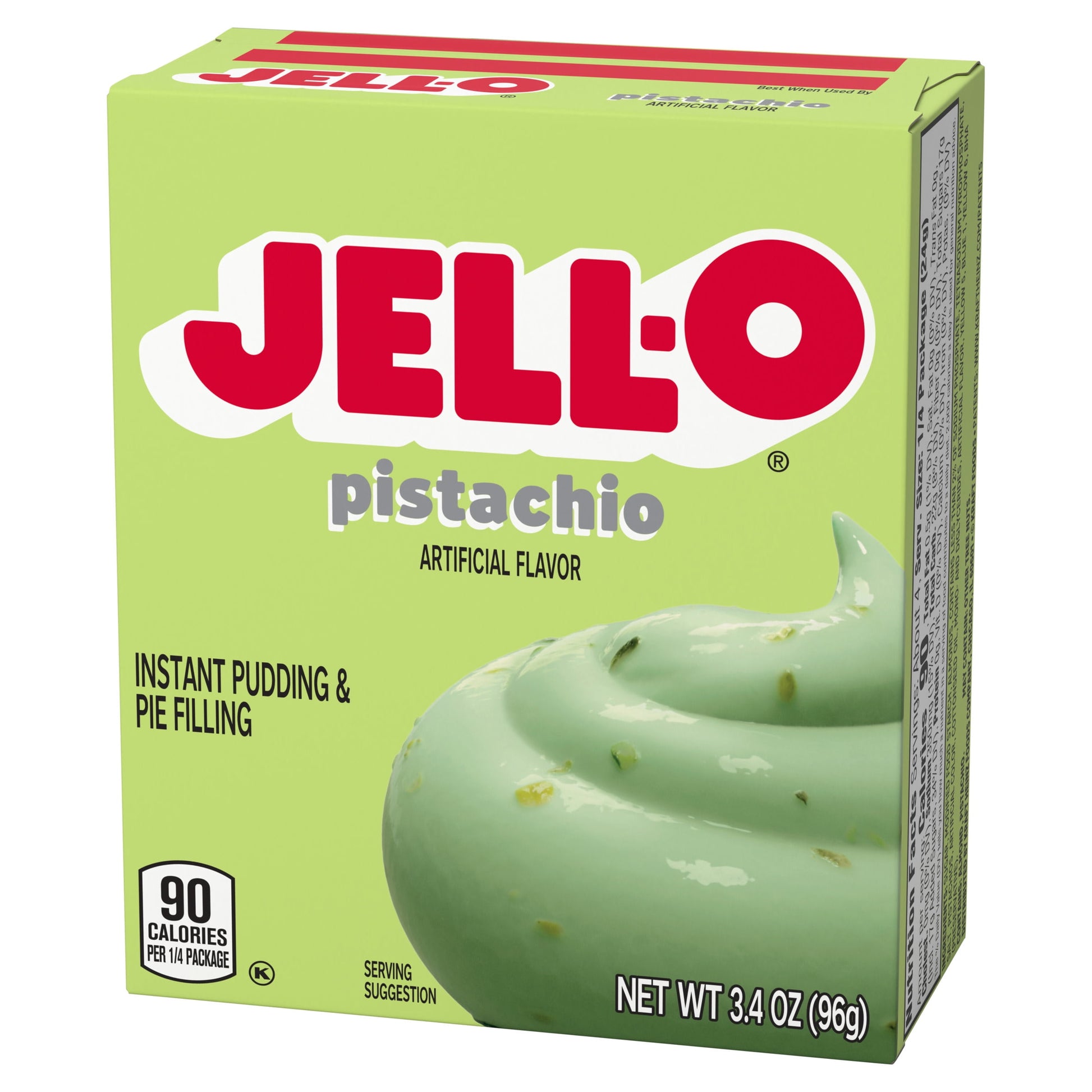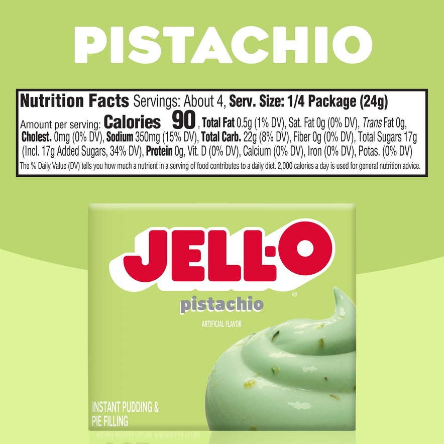 Snack happy. Jell-O Pistachio Artificially Flavored Instant Pudding Mix & Pie Filling tastes delicious whether you enjoy it as a treat or use it as an ingredient in your favorite dessert recipes. Add some wonder to your day with a delicious pistachio dessert. Fun to make with your kids, our artificially flavored pistachio pudding mix can also be used to create a poke cake, tasty crepes or pistachio pie filling. Our artificially flavored pistachio pudding is ready in as little as five minutes. Simply stir milk into the pudding mix and allow to set. Every Jell-O pudding mix comes packaged in a 3.4-ounce sealed pouch. Pudding fun in every bite.