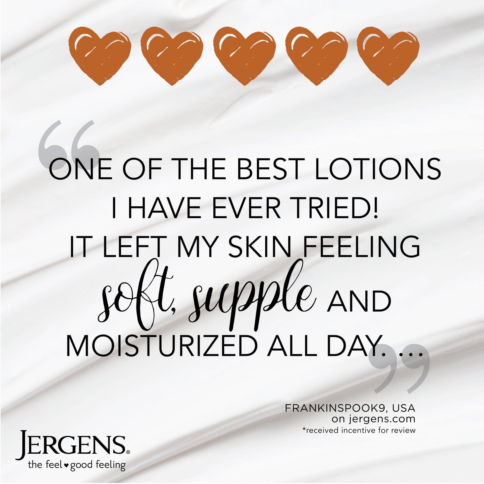 Pamper yourself with Jergens Deep Restoring Argan Oil Body Lotion! This oil-infused moisturizer is nourishing and restorative with essential ingredients that give your skin the daily moisture it needs. Argan Oil, often called liquid gold, combined with skin-softening Vitamin E for a formula that leaves skin silky smooth and visibly healthy for a full-body moisture. For Best Use: Smooth on daily to indulge in deeply nourished skin every day. OUR STORY: Since 1901, Jergens skin care has been the trusted brand for comforting moisture. That’s because everything we do is designed to help you feel good – soothing relief from dryness, a touch of summer color, a fruity scent that makes Monday feel like Friday. We’re not here to stop at skin deep. We’re here to help you feel truly, deeply, skin-to-soul comfortable, with a few surprises along the way. We bottle all that up into the Feel-Good Feeling of Jergens. Satisfaction Guarantee. Limitations may apply.