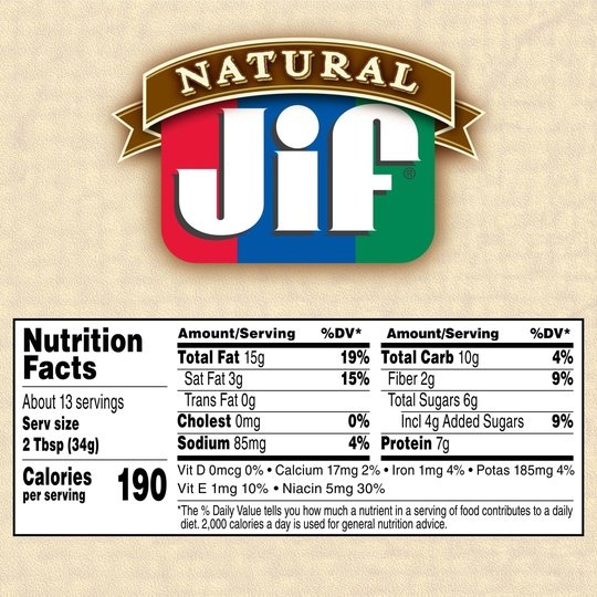 Contains 1- 16 Ounce Jar of Jif Natural Creamy Peanut Butter with Honey