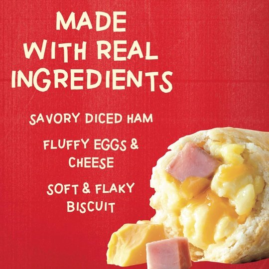 Features savory diced ham, real eggs and cheese rolled into a soft and flaky biscuit