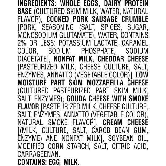 Rise and Shine: Start your morning off with a boost of happiness so good, you can taste it. Our egg bites are made with seasoned sausage and a creamy blend of melted mozzarella, cheddar, and gouda cheese that will brighten anyone?s morning.