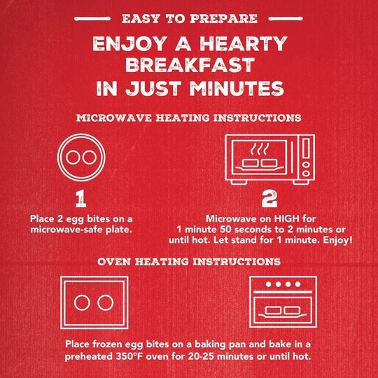 Never Miss Breakfast Again: Ready in just minutes, our egg bites can conveniently be placed in the microwave and quickly heated. This hearty breakfast food makes for the ideal meal.