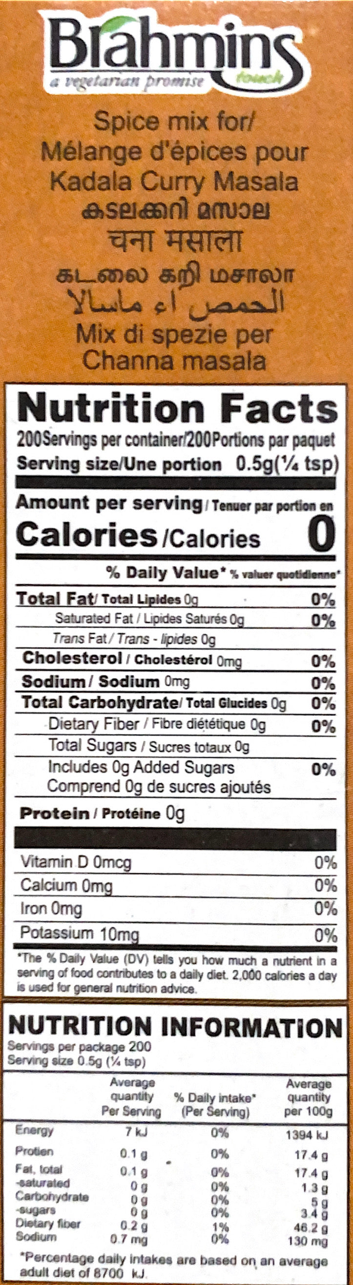 Brahmins Kadala Curry Masala is for preparation of a spicy gravy based curry recipe made with black chickpeas and coconut. It is served specifically with kerala puttu and hence it is also known as puttu kadala curry. It is very simple and easy to make with this mix and more importantly can also be served as a side dish to chapati and dal rice combination.