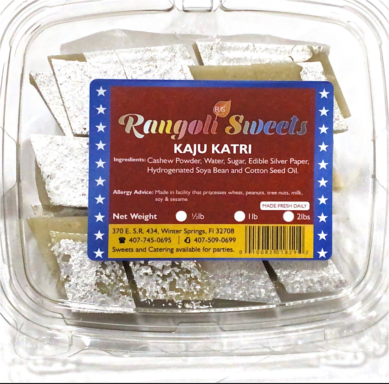 Kaju katli, also known as kaju barfi, is an Indian dessert similar to a barfi. Kaju means cashew; Barfi is often, but not always, made by thickening milk with sugar and other ingredients.