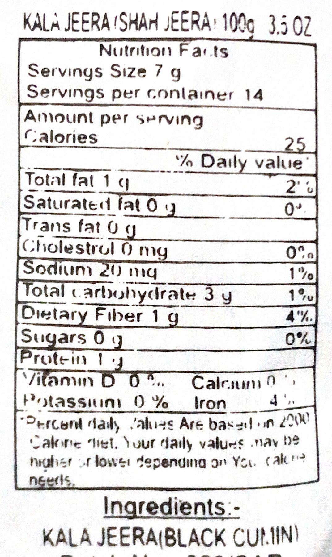 Kala Jeera, also known as black cumin, but not to confust Nigella (black seed). It is a commonly used spice in Indian cooking. Kala jeera is darker and sweeter in taste than ordinary cumin. It is used in Indian rice recipes, curries and tandoori dishes. For a rich nutty flavor, toast the seeds briefly before using.