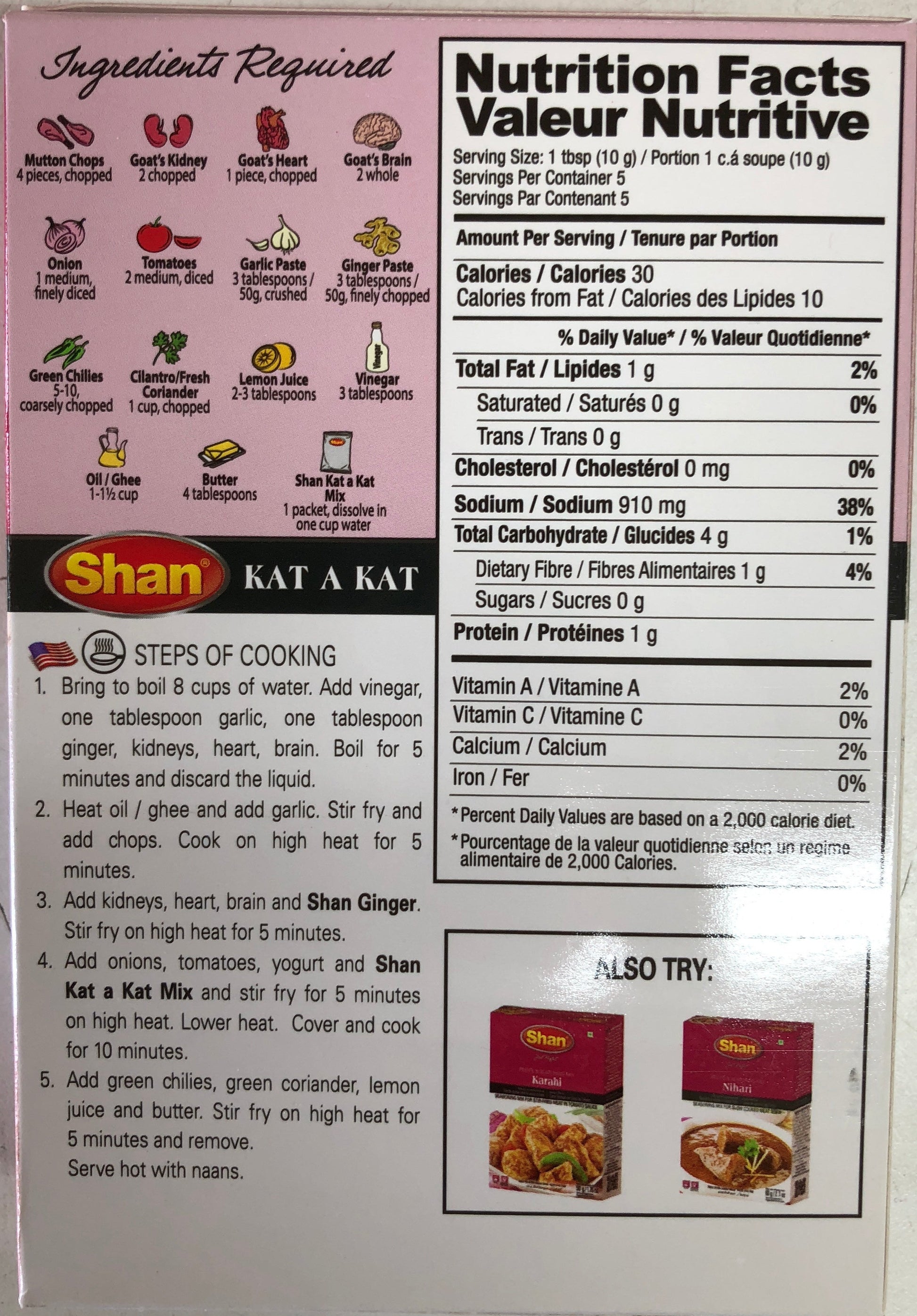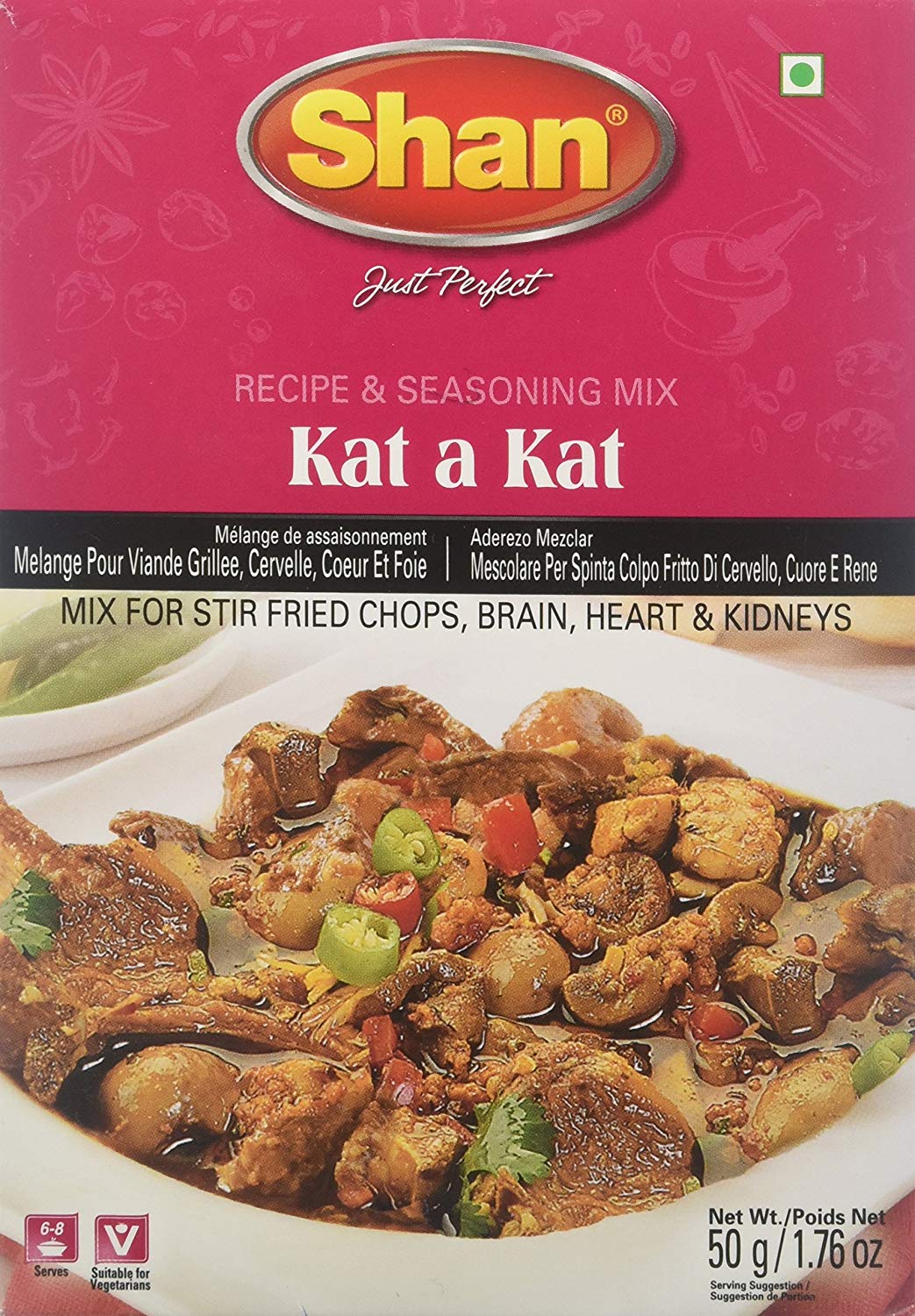 Shan Kat a Kat Curry Mix is great for stir fried chops, brain, heart and kidneys. Simply follow the recipe provided on the back of the box for a delicious Brain Masala meal.