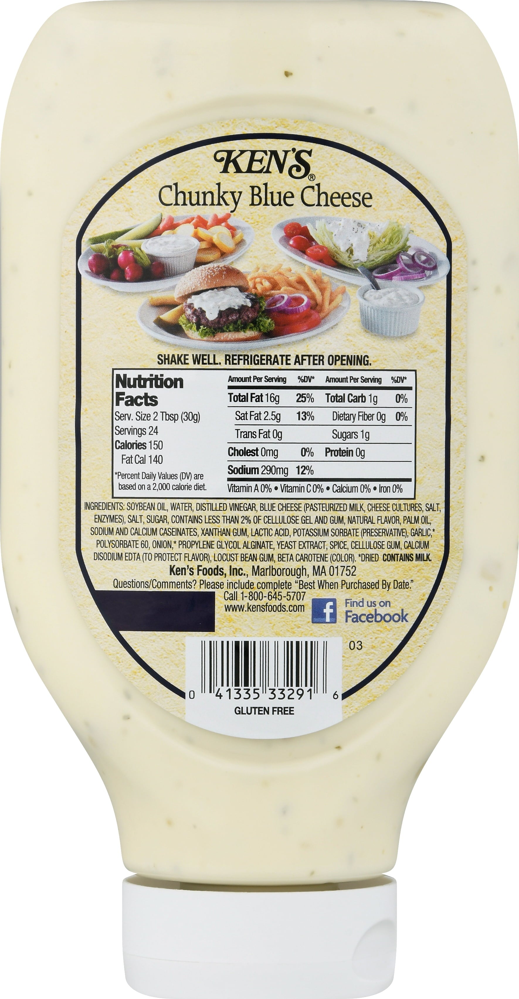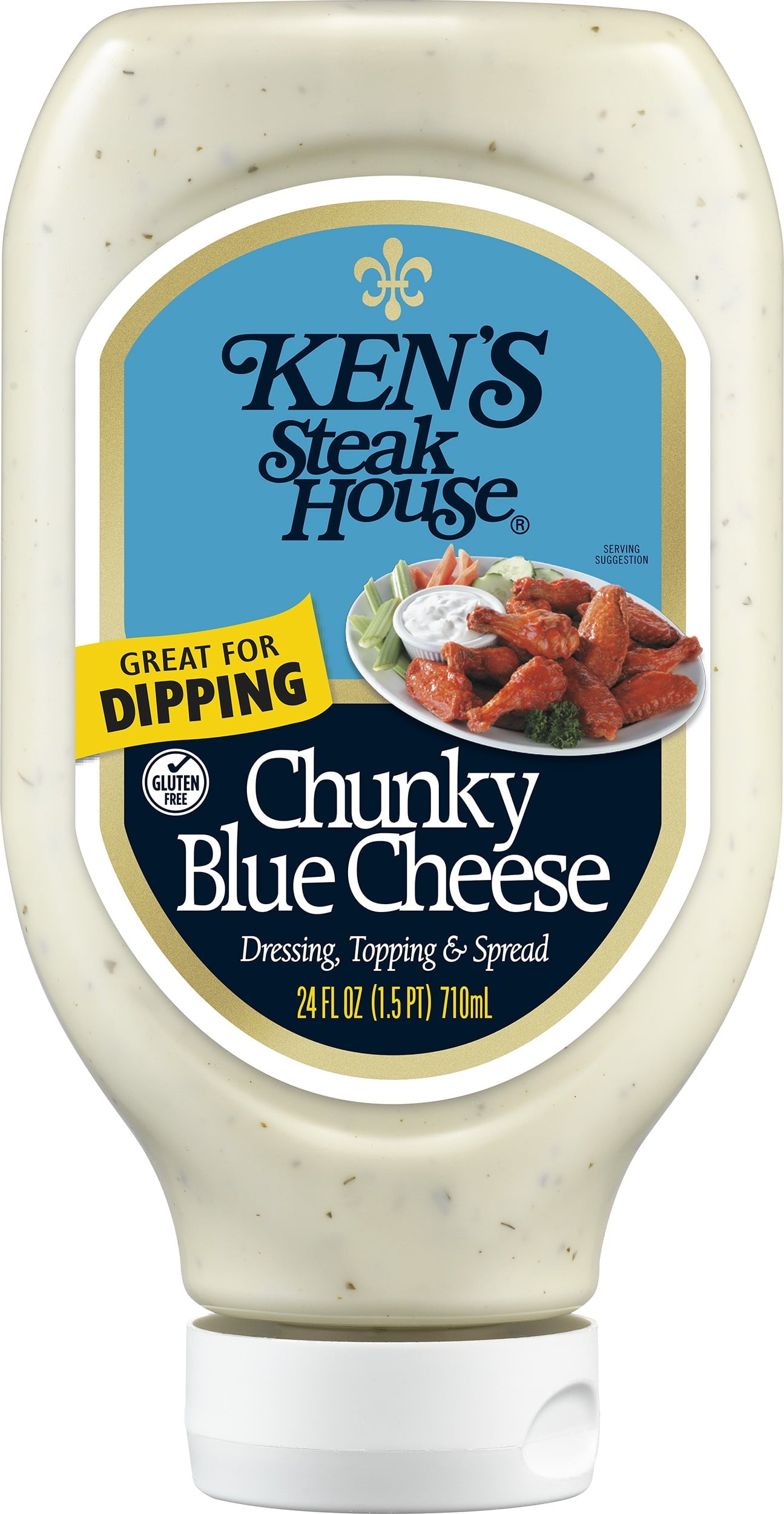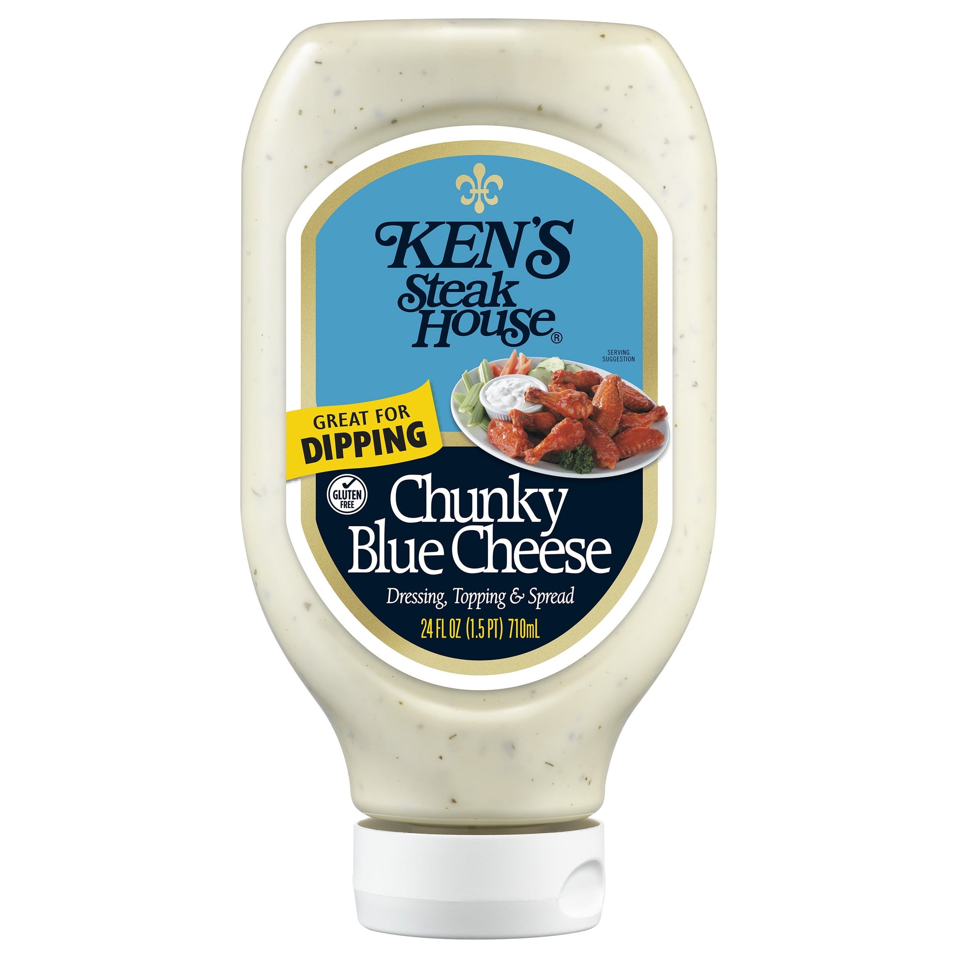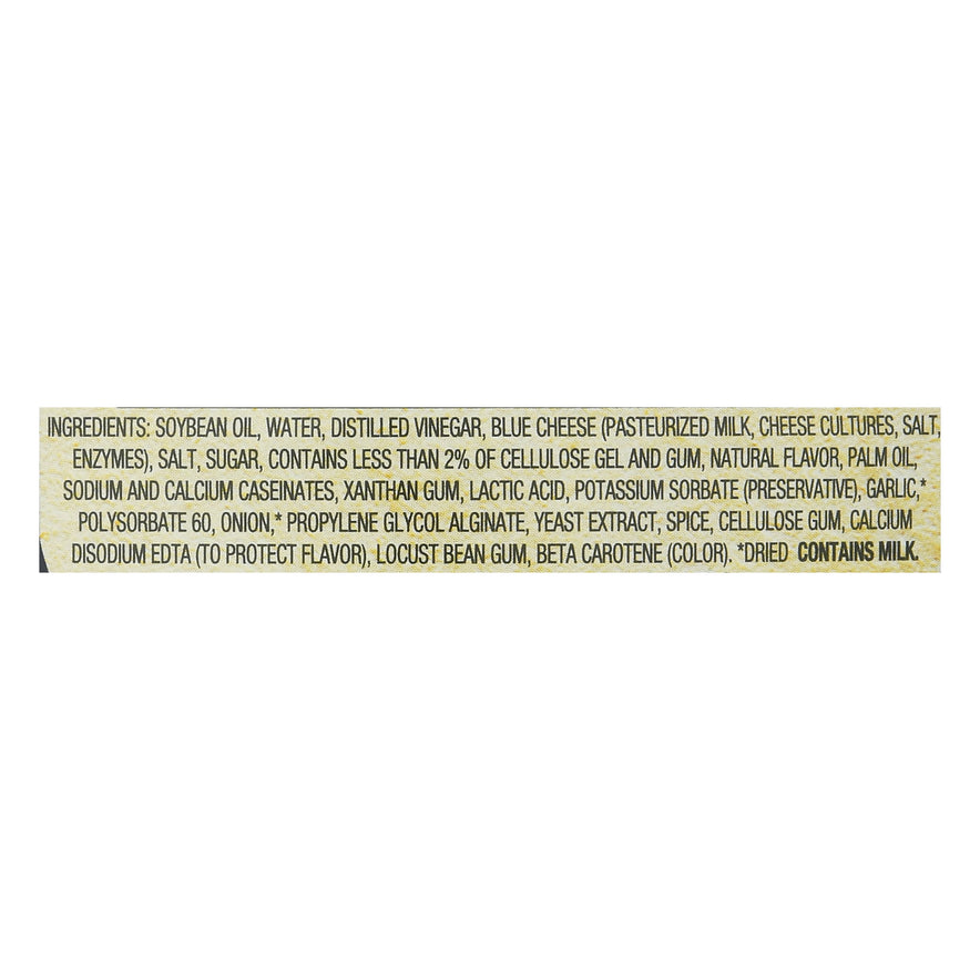 Big, classic blue cheese taste that could only come from big chunks of real blue cheese. A must for every fridge. Pour it over a wedge of cold lettuce for a salad course that can't be beat. Spread it on sandwiches. Dress up a burger. Use it as a gluten-free dip for fresh, crunchy veggies. Making wings? Be sure to get an extra bottle.