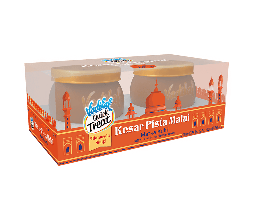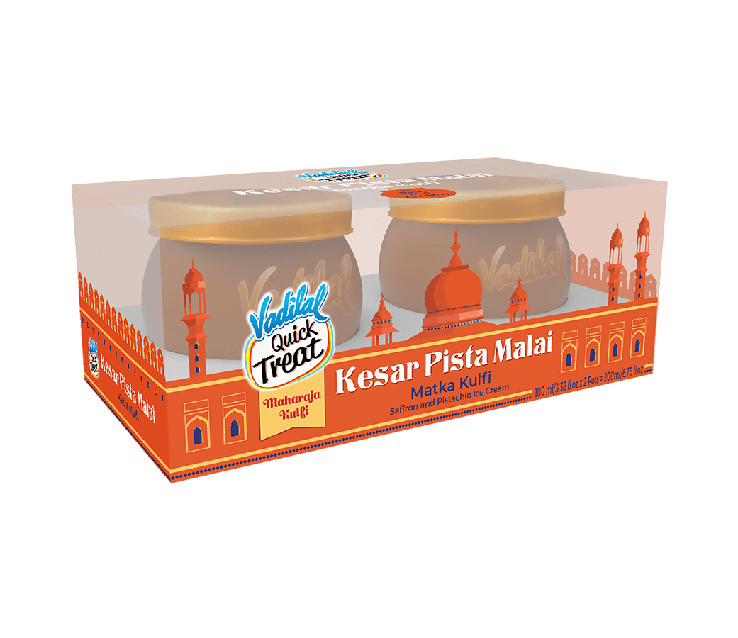 Vadilal Quick Treat Kesar Pista Malai Matka Kulfi Ice Cream 3.38 fl oz/100ml x 2 Pots
