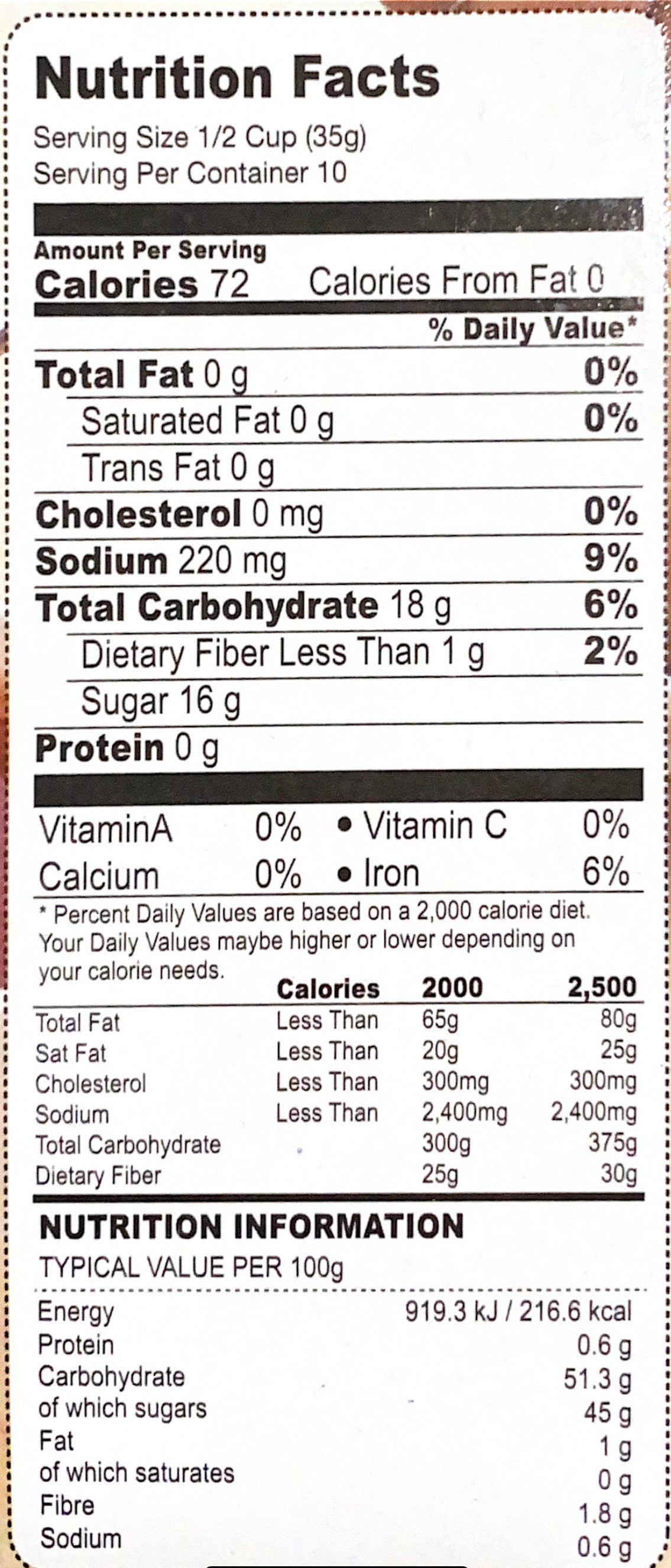 Ingredients: Sugar, water, dried mango slices, salt, red chilli powder, ginger powder and spices.