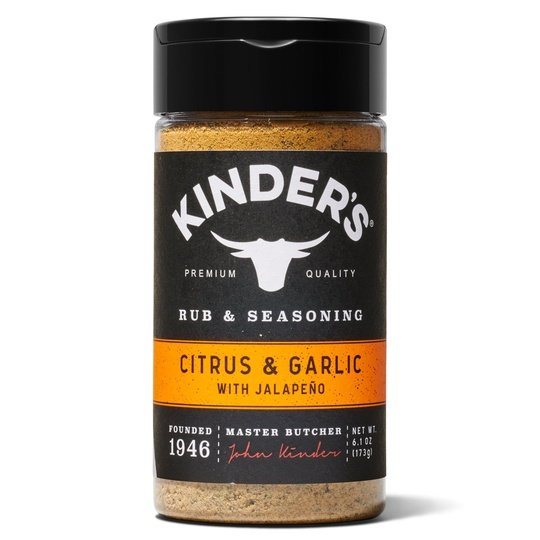 Kinder's Citrus and Garlic Rub and Seasoning contains no artificial flavors and is gluten free.