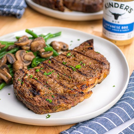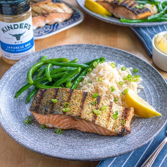 A new take of steak seasoning inspired by the flavors of Japanese yakiniku sauce. Kinder's Japanese BBQ is a blend of soy sauce, sugar, sesame, and garlic balanced with sea salt, green onion, and a hint of ginger. Try it with beef, pork, chicken, fish, and veggies.