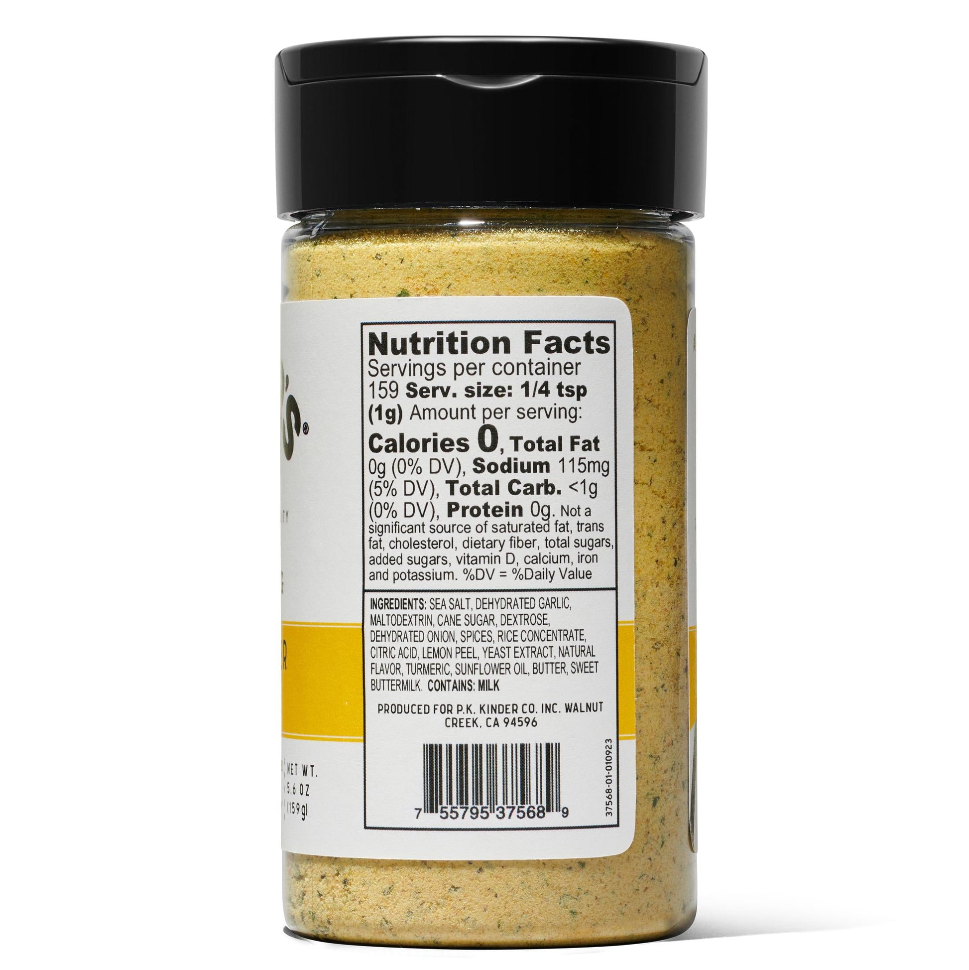 Kinder's Lemon Butter Garlic Seasoning contains real dairy butter, lemon, and premium garlic chunks