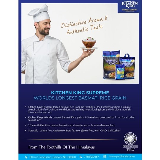 Kitchen King Basmati Rice 20 Lbs. Supreme and Authentic White Basmati rice from the foothills of the Himalayan Mountains World's Longest Basmati Rice with long and fluffy grains Naturally Aromatic and aged for 12 months