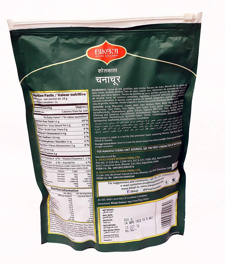 Bikaji originating from, Bikaner, a town in the western state of Rajasthan in India .. Light yellow in color it is famously known to have been first prepared in Bikaner, and over the years has not just become a characteristic product of Bikaner, Savory spiced , dew bean and gram flour noodle snacks. 100% Vegetarian Product of India. Storage Instructions: Store in a cool dry place away from sunlight. Once opened keep in an airtight container. Try Our Other Products: Bhujiya, Navratna Mix Sub kuch, Cornflakes Mix, Chowpati Bhelpuri, Kaju Badam Laccha, All in One Kuch Kuch, Soan Papdi, Mango Chocolate Sweet, Papad, Anjeer barfi, Khajoor Barfi, Moong Daal, Shahi Mix, Badi , Mungodi, soy stick, punjabi tadka, kaji kismis, khatta metha tana bana, tana-tan, boondi bhujiya, bhujiya no-3, Nut cracker, karorepati khotta Bhujiya, achari mathhi, Gol matthi, nashta mathri, nashta samosa, falahari mix Brand Description- Bikaji Foods International Ltd. (formerly Shivdeep Industries Ltd.) was founded in 1987 at Bikaner, Rajasthan by Shri Shivratan Agarwal. Bikaji is a leading FMCG brand in India and abroad with its core products line of Bhujia, Namkeen, Papad, Snacks and Sweets. All products are made using select raw materials procured from best in their category, processed in an isolated and hygienic environment and are un-touched by human hand and are packed in a state-of-the-art automated packaging plant. Papad, Snacks and Sweets. All products are made using select raw materials procured from best in their category, processed in an isolated and hygienic environment and are un-touched by human hand and are packed in a state-of-the-art automated packaging plant. Papad, Snacks and Sweets. All products are made using select raw materials procured from best in their category, processed in an isolated and hygienic environment and are un-touched by human hand and are packed in a state-of-the-art automated packaging plant.