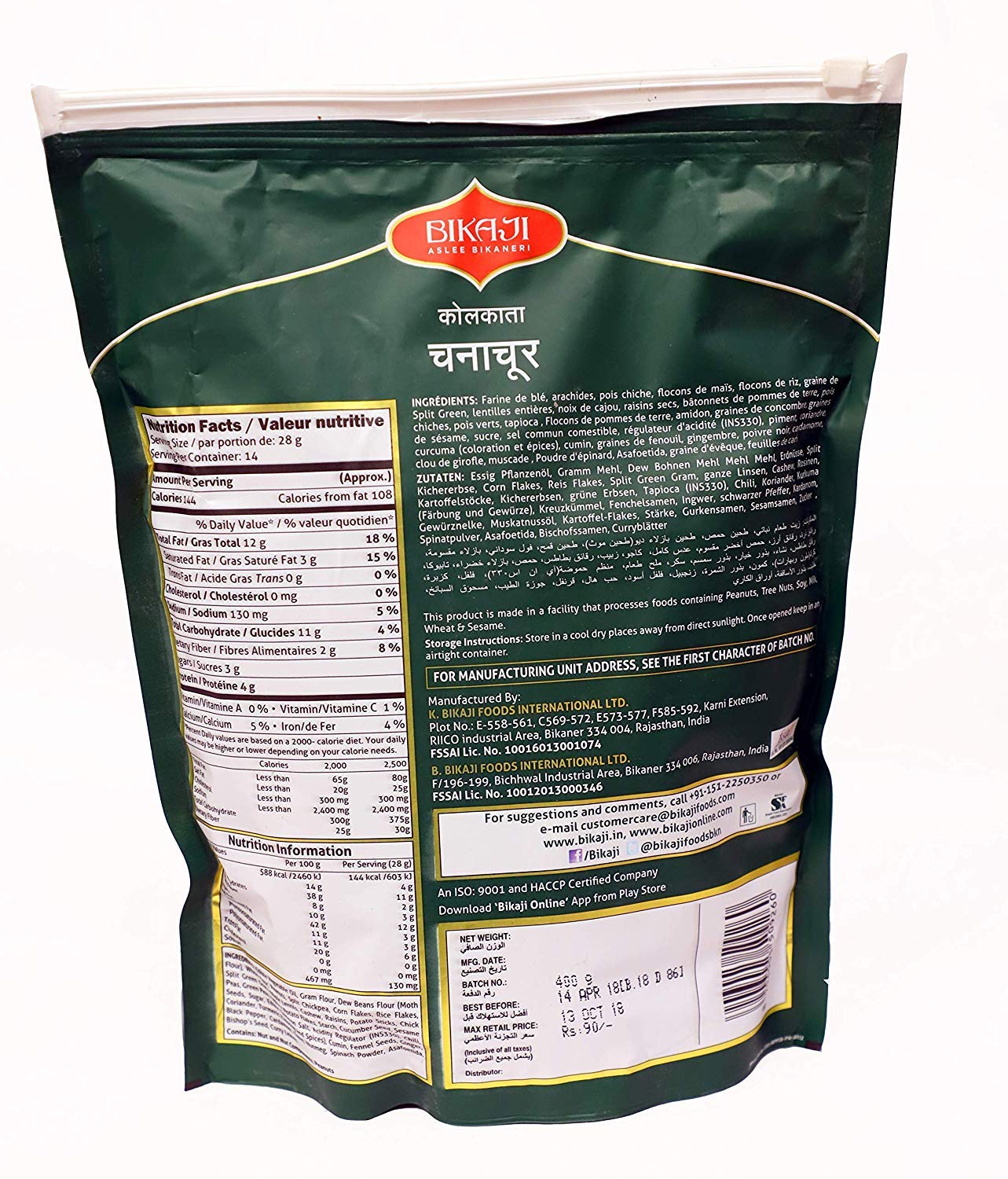 Bikaji originating from, Bikaner, a town in the western state of Rajasthan in India .. Light yellow in color it is famously known to have been first prepared in Bikaner, and over the years has not just become a characteristic product of Bikaner, Savory spiced , dew bean and gram flour noodle snacks. 100% Vegetarian Product of India. Storage Instructions: Store in a cool dry place away from sunlight. Once opened keep in an airtight container. Try Our Other Products: Bhujiya, Navratna Mix Sub kuch, Cornflakes Mix, Chowpati Bhelpuri, Kaju Badam Laccha, All in One Kuch Kuch, Soan Papdi, Mango Chocolate Sweet, Papad, Anjeer barfi, Khajoor Barfi, Moong Daal, Shahi Mix, Badi , Mungodi, soy stick, punjabi tadka, kaji kismis, khatta metha tana bana, tana-tan, boondi bhujiya, bhujiya no-3, Nut cracker, karorepati khotta Bhujiya, achari mathhi, Gol matthi, nashta mathri, nashta samosa, falahari mix Brand Description- Bikaji Foods International Ltd. (formerly Shivdeep Industries Ltd.) was founded in 1987 at Bikaner, Rajasthan by Shri Shivratan Agarwal. Bikaji is a leading FMCG brand in India and abroad with its core products line of Bhujia, Namkeen, Papad, Snacks and Sweets. All products are made using select raw materials procured from best in their category, processed in an isolated and hygienic environment and are un-touched by human hand and are packed in a state-of-the-art automated packaging plant. Papad, Snacks and Sweets. All products are made using select raw materials procured from best in their category, processed in an isolated and hygienic environment and are un-touched by human hand and are packed in a state-of-the-art automated packaging plant. Papad, Snacks and Sweets. All products are made using select raw materials procured from best in their category, processed in an isolated and hygienic environment and are un-touched by human hand and are packed in a state-of-the-art automated packaging plant.
