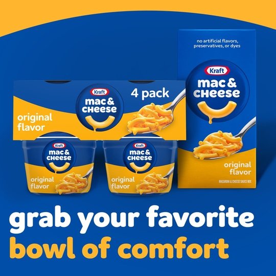 Kraft Original Mac & Cheese Dinner Cup contains no artificial flavors, preservatives or dyes