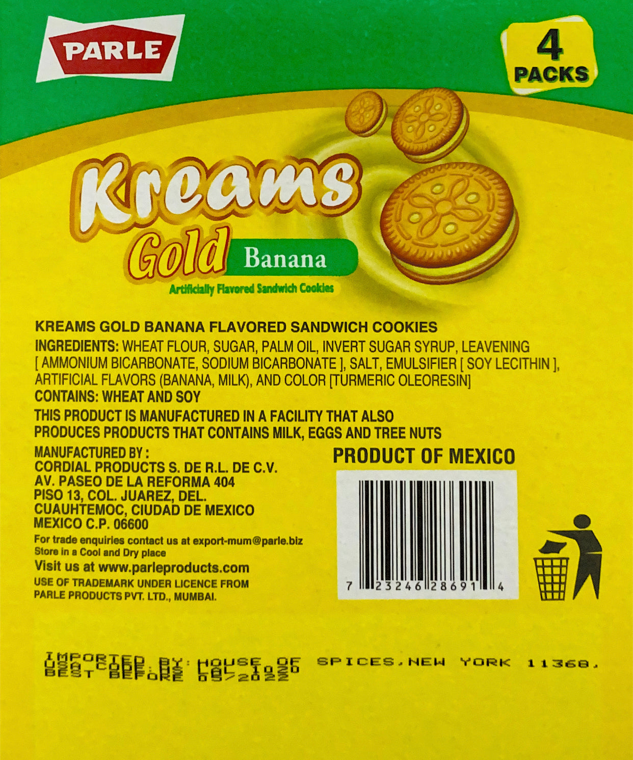 Parle Kreams Gold Banana | Artificially Flavoured Sandwich Cookies