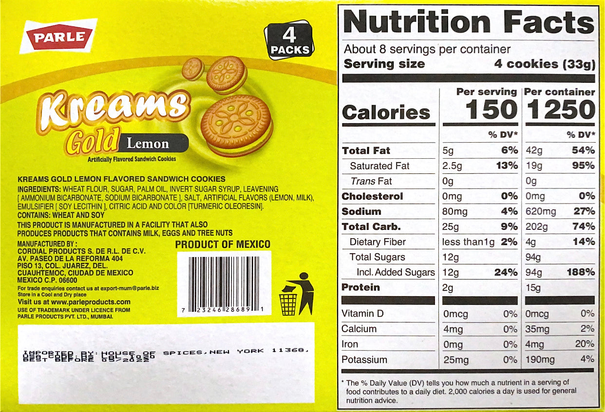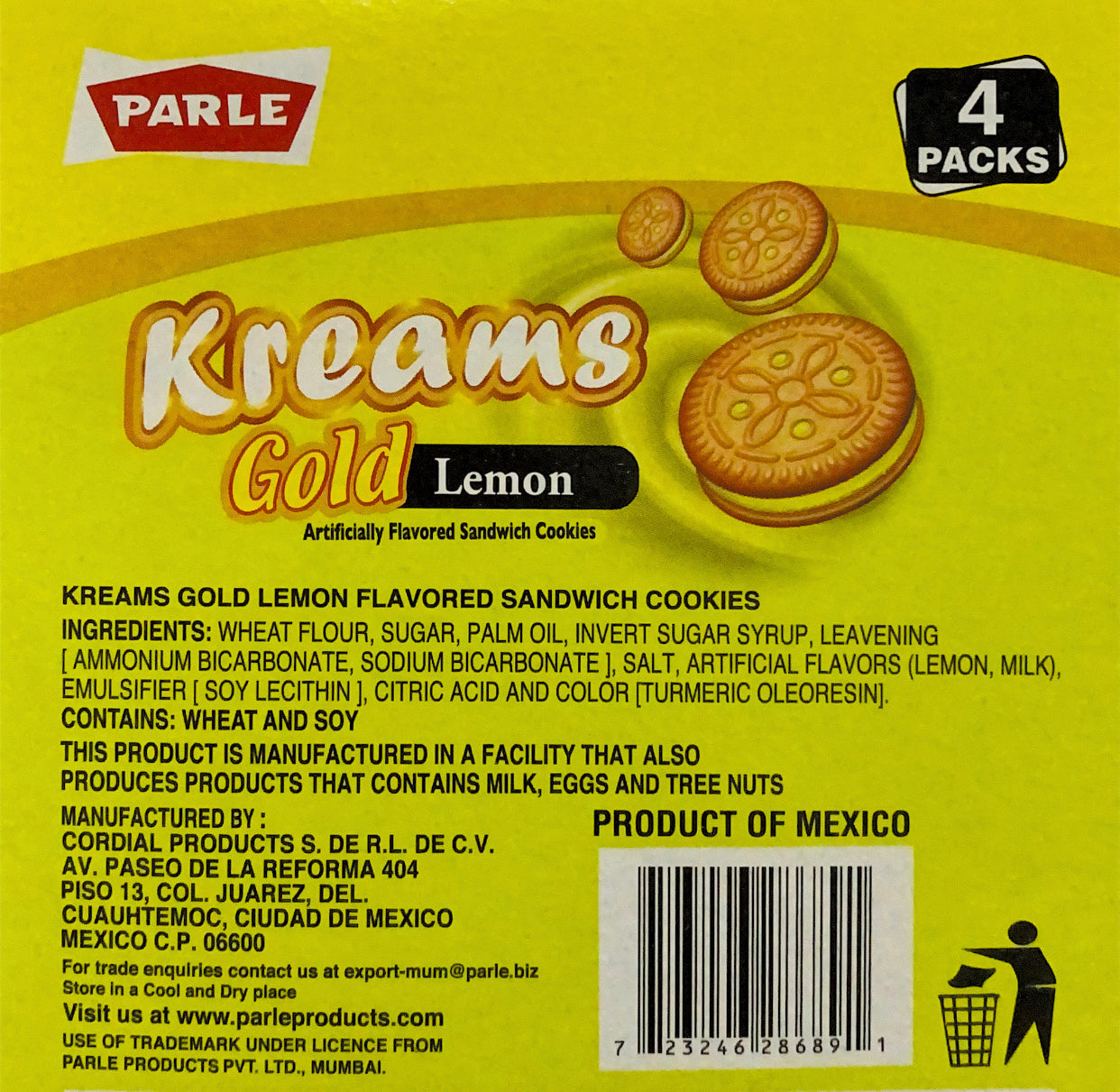 Parle Kreams Gold Lemon | Artificially Flavored Sandwich Cookies