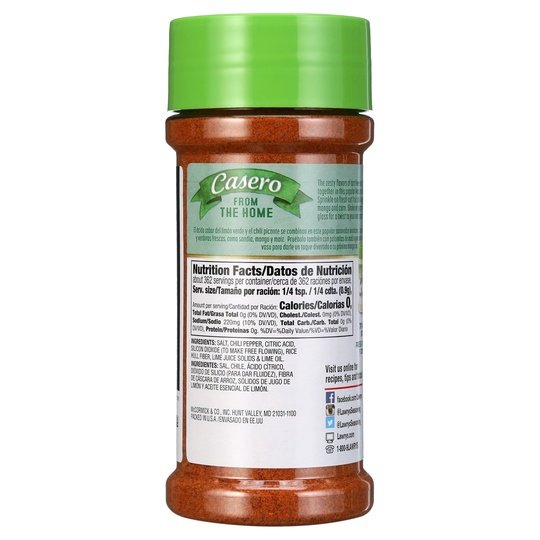 Lawry’s Casero Chili & Lime Seasoning is made with lime juice & chili pepper
