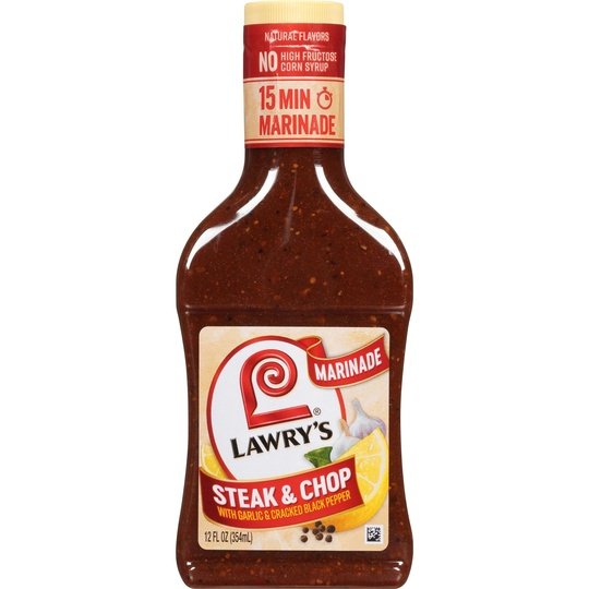 Lawry's Steak & Chop Marinade brings your favorite steakhouse flavor home for the whole family to enjoy. It’s a robust blend of garlic, cracked black pepper, mustard, caraway seed and a splash of lemon juice. On beef, chicken, pork or ribs, it can't be beat. Our 15-minute marinade turns any cut of meat into a five-star masterpiece. And, it only takes 15 minutes to add zesty flavor and unrivaled tenderness. Lawry’s Marinades work great no matter how you use them – as a chicken or steak marinade, a pork chop seasoning, a burger mix-in, or a meat tenderizer. Made with natural flavors and no high fructose corn syrup and no added MSG*, our steakhouse marinade brings grilling perfection to your table.*Except those naturally occurring glutamates This Lawry's® Steak & Chop Marinade is in a Plastic bottle that is 12 fluid ounces. Store this shelf-stable item at an ambient temperature.