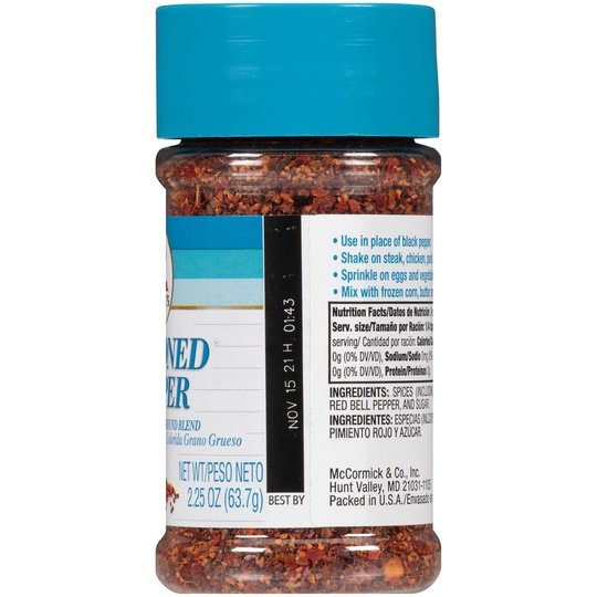 Lawry's Coarse Ground Blend Seasoned Pepper brightens up and adds oomph to just about any dish. Featuring a jazzy blend of black pepper, sweet red bell peppers and natural spices, this coarse ground blend is a colorful, tastier alternative to plain black pepper.