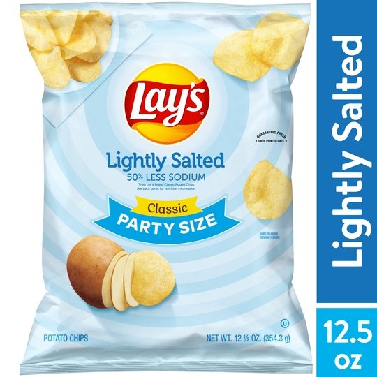 Lay's Potato Chips Lightly Salted Classic, Wherever celebrations and good times happen, the LAY'S brand will be there just as it has been for more than 75 years. With flavors almost as rich as our history, we have a chip or crisp flavor guaranteed to bring a smile on your face. 50% Less Sodium than Lay's Brand Classic Potato Chips Product Comparison Per 1 Oz. Serving: Lay's® Brand Lightly Salted Potato Chips; Sodium: 70 mg; Taste: 100% Per 1 Oz. Serving: Lay's® Brand Classic Potato Chips; Sodium 170 mg; Taste: 100%