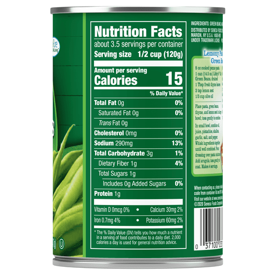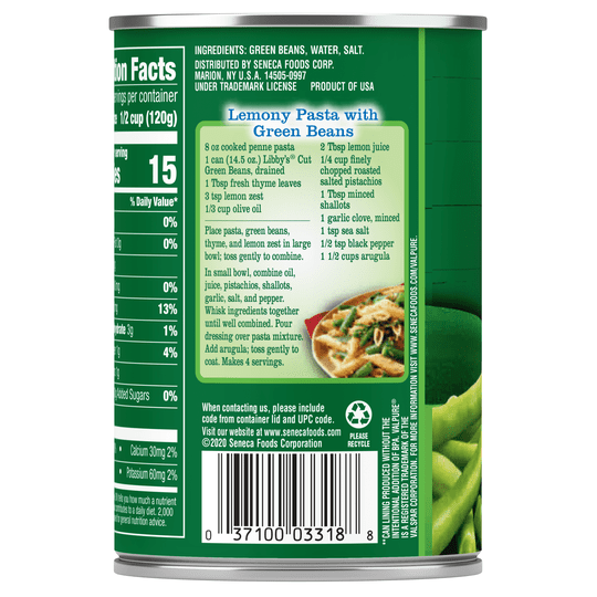 When you want the delicious taste of vegetables at your table, Libby's Cut Green Beans can be your solution. Ready to serve, they can be heated up and served warm or mixed cold into salads and other dishes. Available in an easy-to-open containers, the cut green beans can be enjoyed right from the can. Mix and match taste and ingredients as you prepare meals for family and friends. Canned at the peak in flavor, they will taste just like fresh beans off of the vine. Packed in water, the soft vegetables can become a family favorite for even younger members of the crew. Low in fat but high in fiber, they can provide the nutrition you need without the hassle of hulling and steaming.