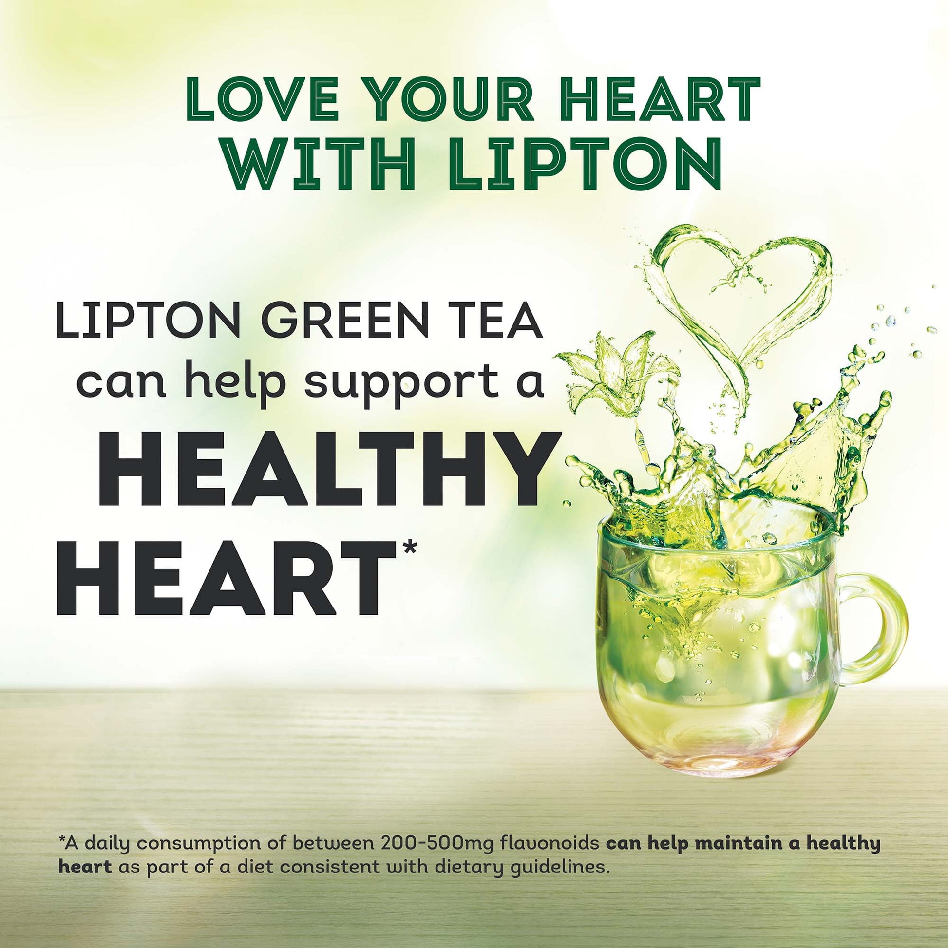 This Lipton Green Tea contains flavonoids, which, along with a diet consistent with dietary guidelines, can help maintain heart health. There are so many benefits to drinking tea. Did you know regular consumption of black or green tea can help support a healthy heart? Daily consumption of 2-3 cups of unsweetened brewed tea provides 200-500 mg of flavonoids that can help support a healthy heart as part of a diet consistent with dietary guidelines.