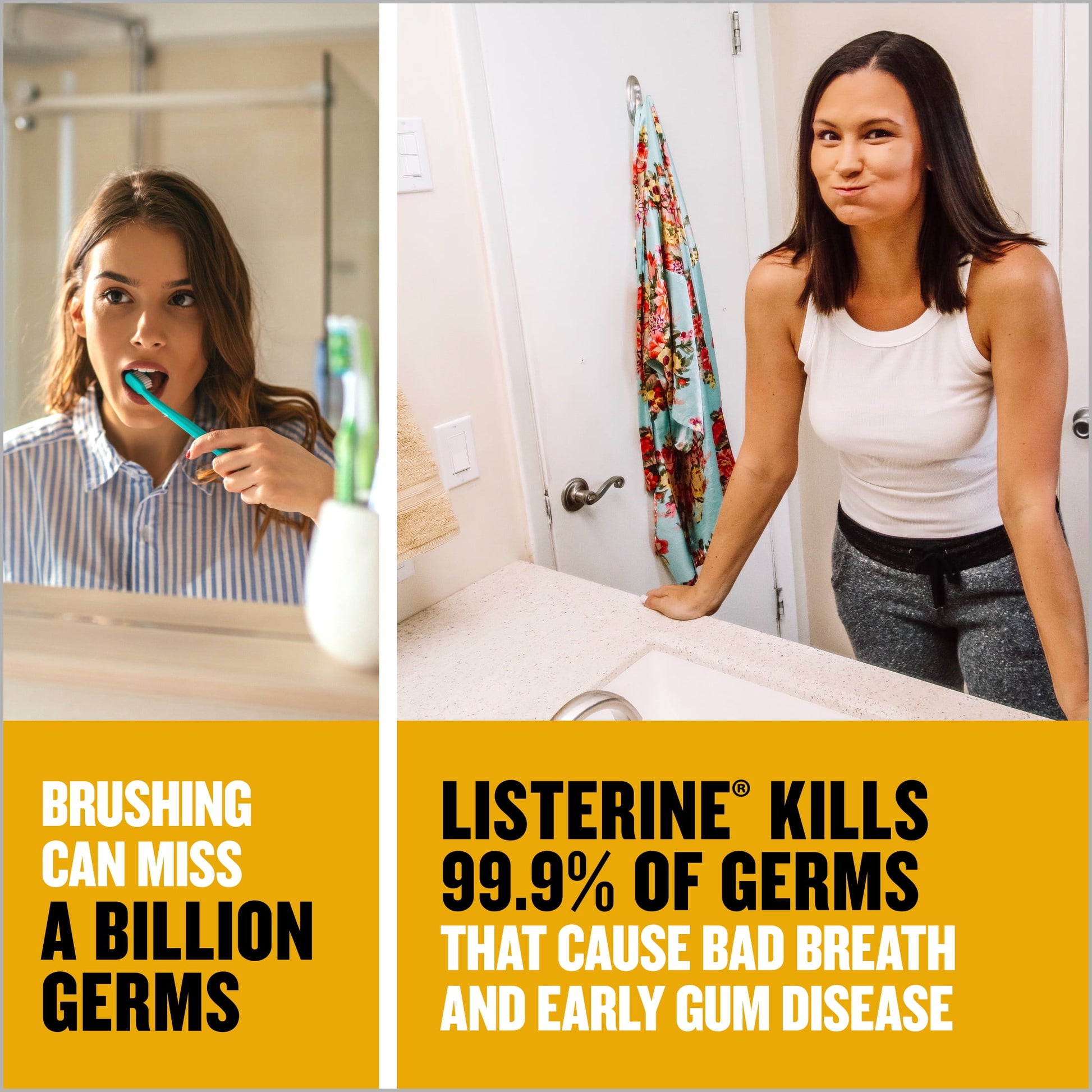 Protect your mouth from germs and get fresh breath with Listerine Original Antiseptic Mouthwash. Accepted by the American Dental Association (ADA), this bad breath mouthwash kills 99.9% of germs that cause bad breath, plaque, and gingivitis for a fresher and cleaner mouth than brushing alone. Clinically shown to reduce 52 percent more plaque and 21 percent more gingivitis than brushing and flossing alone, this refreshing germ killing oral rinse provides a deep clean that cares for your whole mouth. Listerine Original Antiseptic Mouthwash leaves your mouth feeling intensely clean when used as part of a regular oral hygiene routine. From the #1 dentist recommended brand of over the counter mouthwashes, achieve maximum results by rinsing with this antiseptic mouthwash for 30 seconds twice a day, both morning and night, for 24-hour germ protection*. *Germs that cause plaque, gingivitis and bad breath.