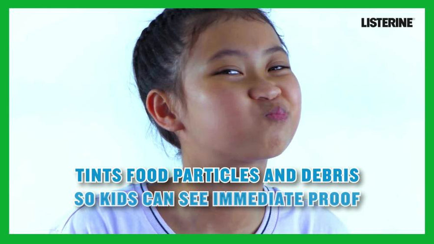 Alcohol-free mouthwash tints food particles & comes in a fun Mint Shield flavor designed for kids
