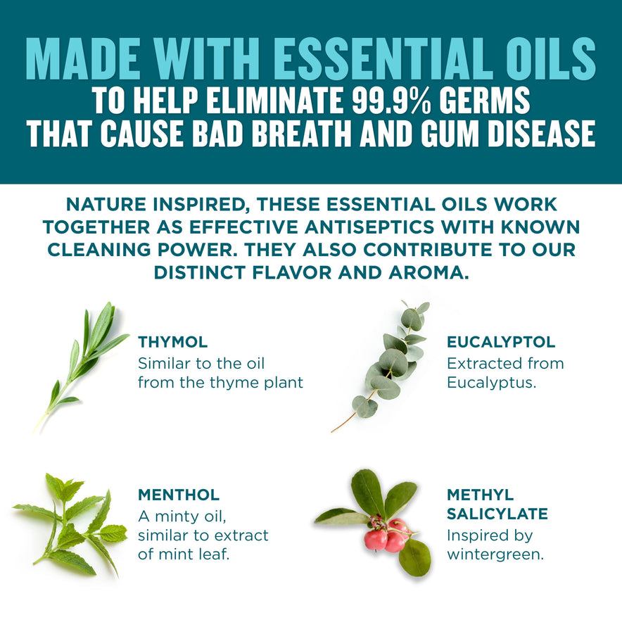 Mint mouthwash provides a powerful, clean feeling that lasts up to 3x longer than brushing alone