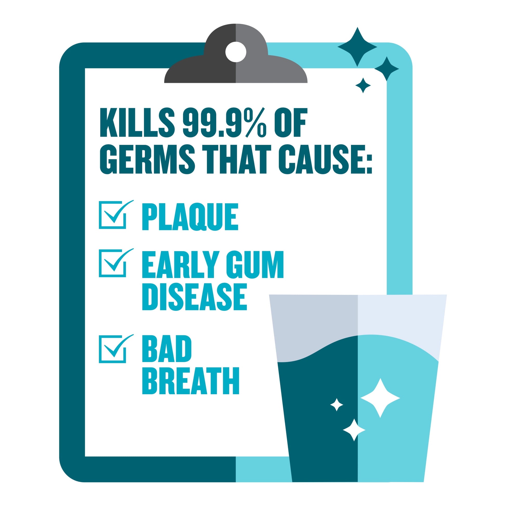 Give your mouth a powerful, dentist-clean feeling with Listerine Ultraclean Antiseptic Mouthwash with refreshing Cool Mint flavor for gingivitis treatment. This oral care mouthwash is clinically proven to fight tartar buildup & kill 99.9% of germs that cause bad breath, plaque & gingivitis & provides up to 3x longer lasting clean feeling versus brushing alone. This tartar control mouthwash helps maintain healthy gums & fresh breath with an added anti-tartar ingredient for cleaner teeth & 4x healthier gums in 3 weeks vs. brushing alone. The Cool Mint flavor of the oral rinse combined with Listerine Everfresh technology will keep your breath fresh & your mouth feeling clean up to 3x longer than brushing alone. Accepted by the American Dental Association (ADA), achieve maximum results by rinsing with this mouthwash for 30 seconds twice a day. We recommend you try Listerine Ultraclean which helps keep your teeth naturally white.