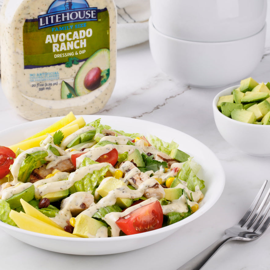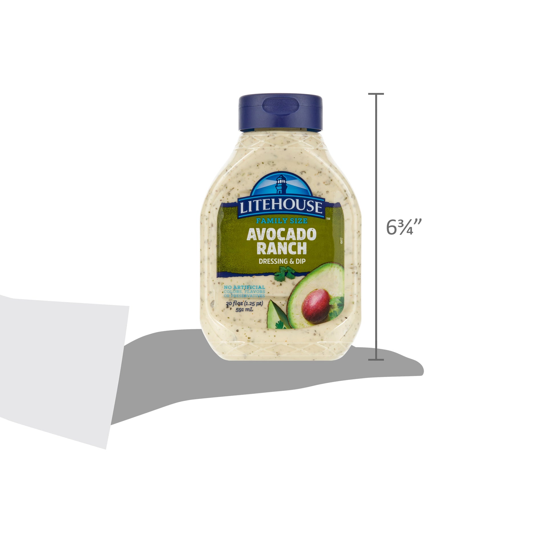 Litehouse's delicious Creamy Avocado Ranch refrigerated salad dressing is easy to pour and full of flavor. This is a great dressing to try on salads, sandwiches, wraps...and more! Great taste with no artificial colors, flavors, or preservatives. Keep refrigerated.