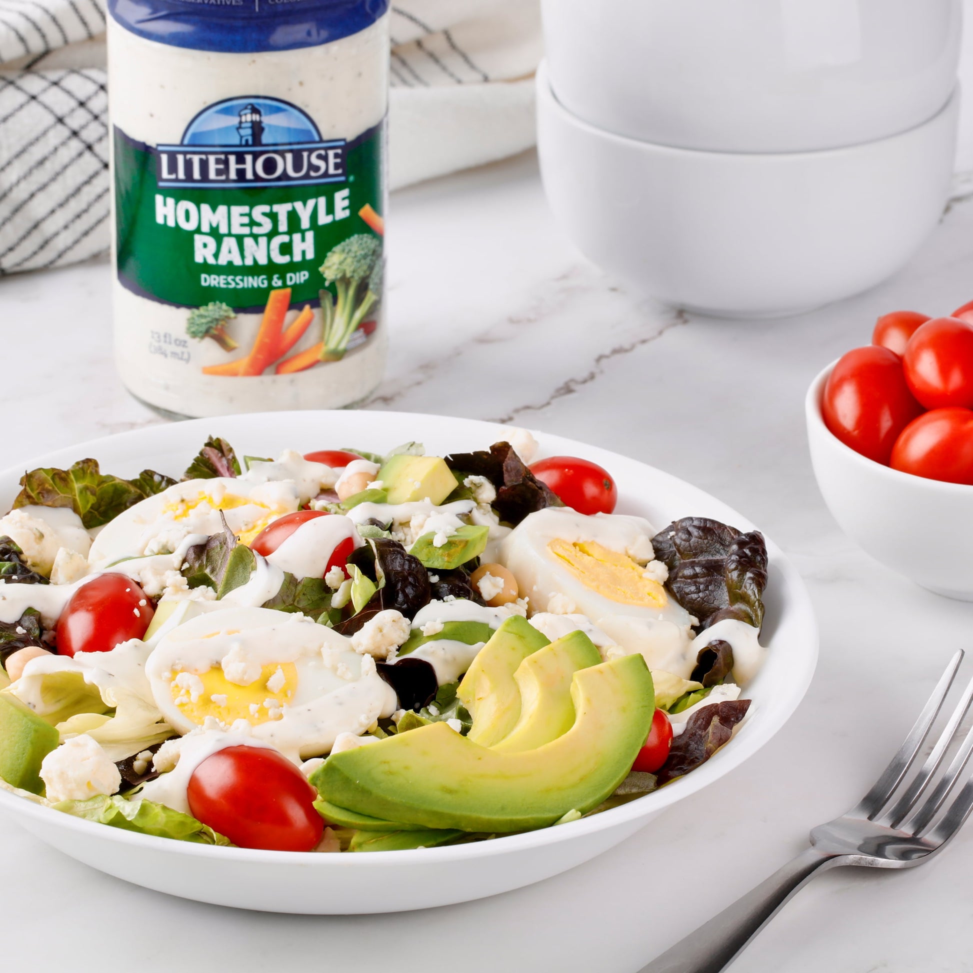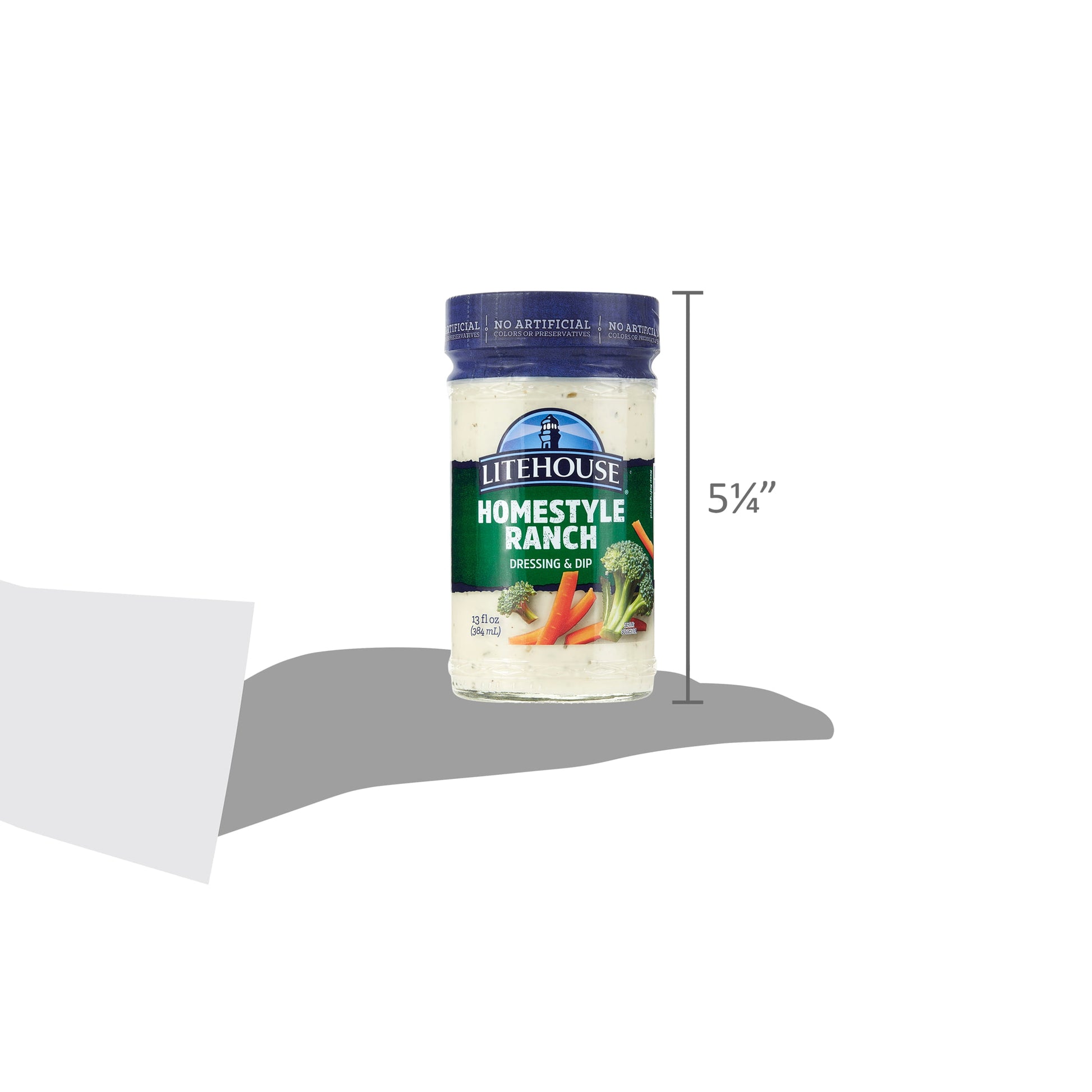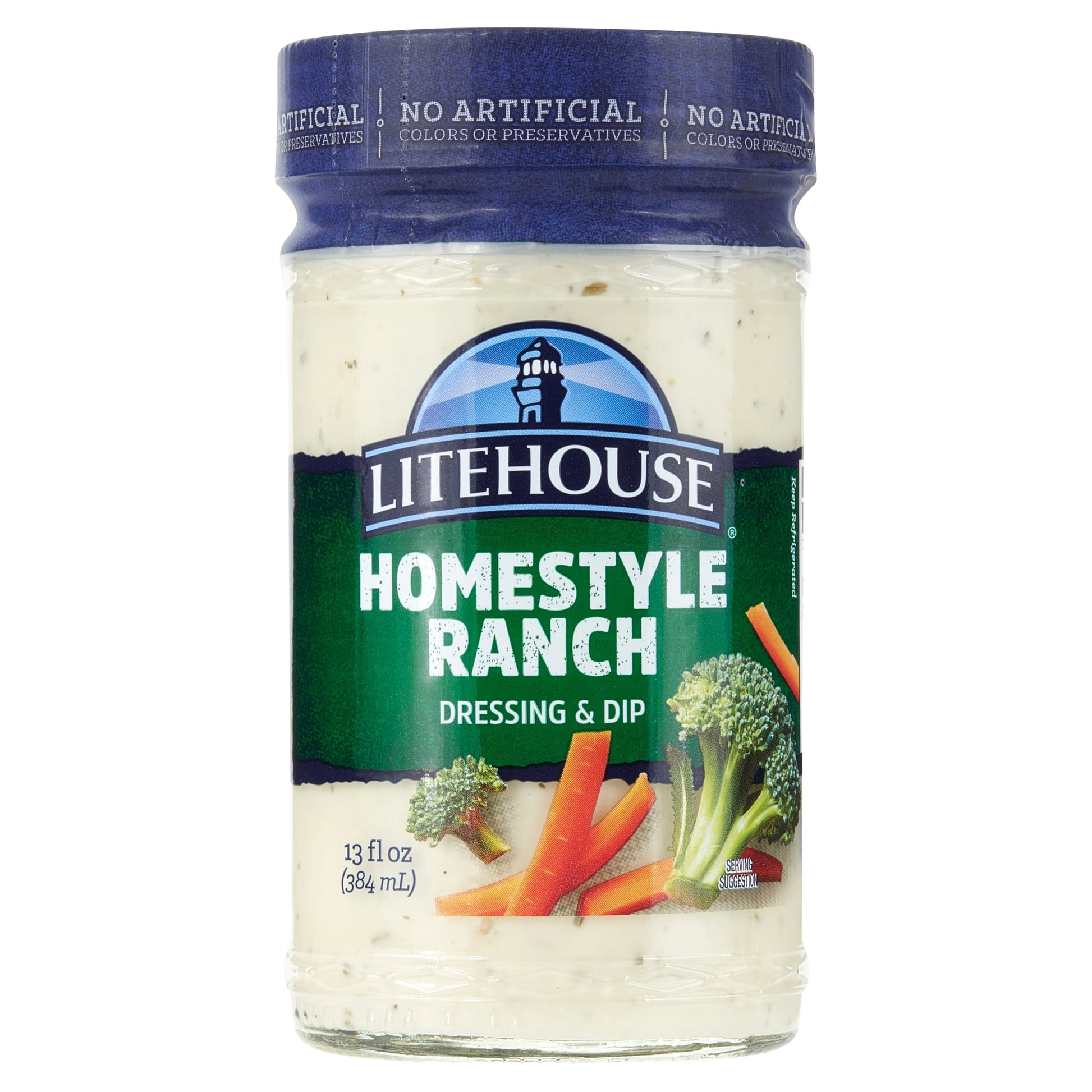 Litehouse's delicious Homestyle Ranch refrigerated salad dressing is easy to pour and full of flavor. This is a great dressing to try on salads, sandwiches, wraps...and more! Great taste with no artificial colors, flavors, or preservatives. Keep refrigerated.