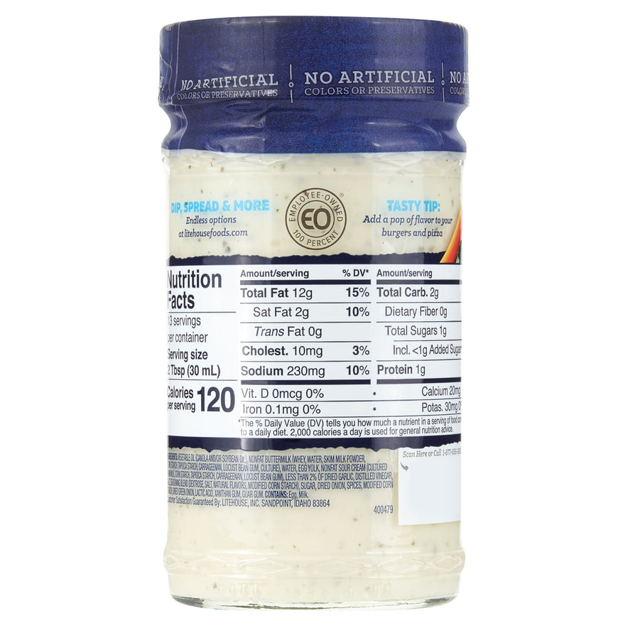 Litehouse Homestyle Ranch refrigerated salad dressing with no artificial colors, flavors or preservatives.