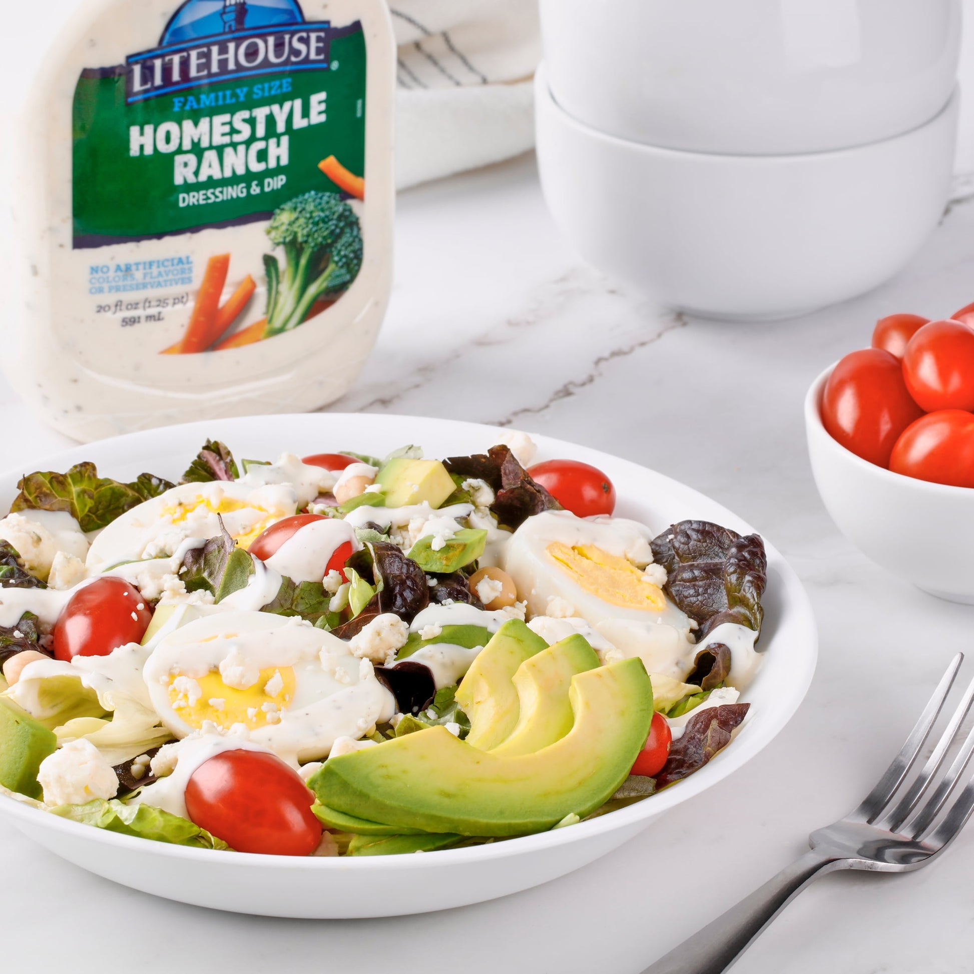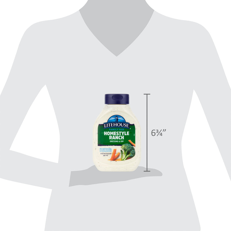 Litehouse's delicious Homestyle Ranch refrigerated salad dressing is easy to pour and full of flavor. This is a great dressing to try on salads, sandwiches, wraps...and more! Great taste with no artificial colors, flavors, or preservatives. Keep refrigerated.