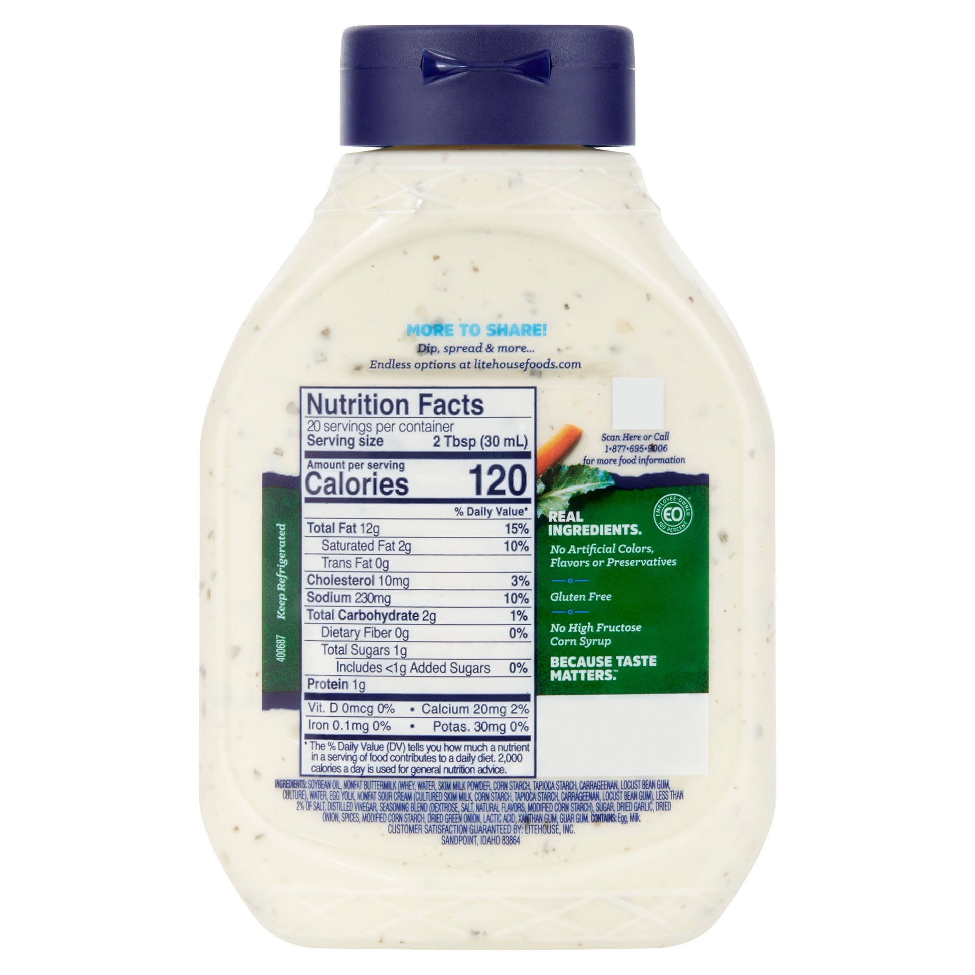Litehouse Homestyle Ranch refrigerated salad dressing with no artificial colors, flavors or preservatives.
