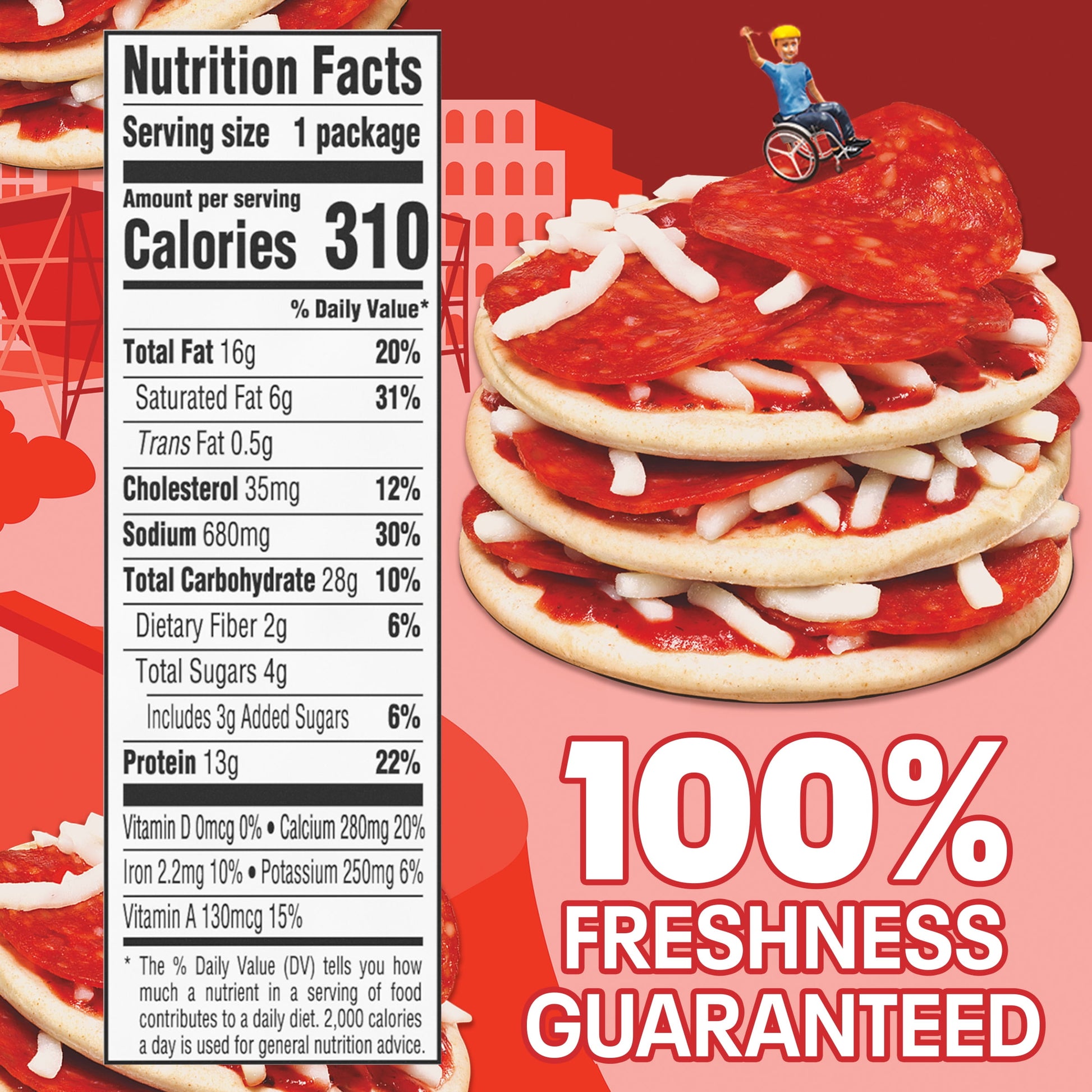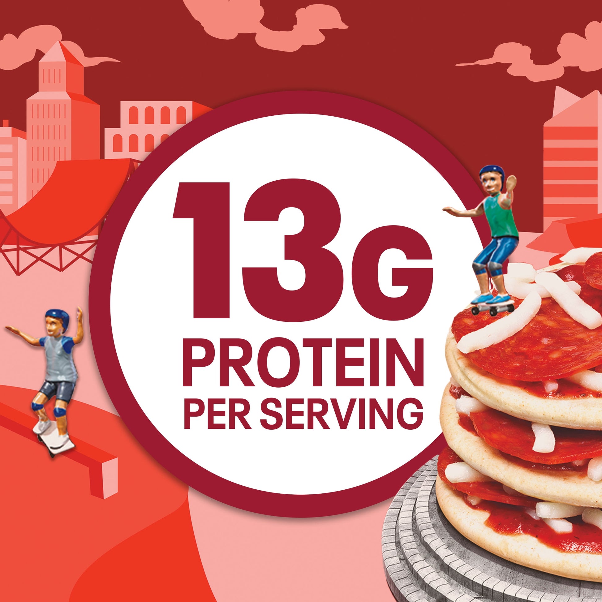 Features real, epic food including pepperoni made with pork and chicken, pizza crusts, pizza sauce and Kraft mozzarella pasteurized prepared cheese product
