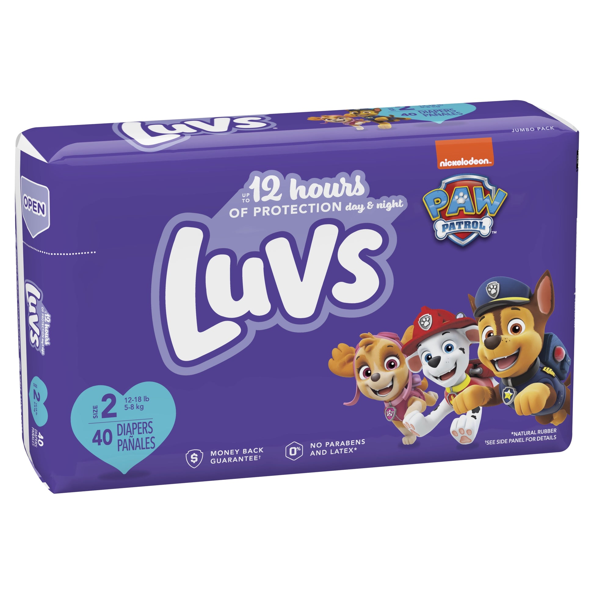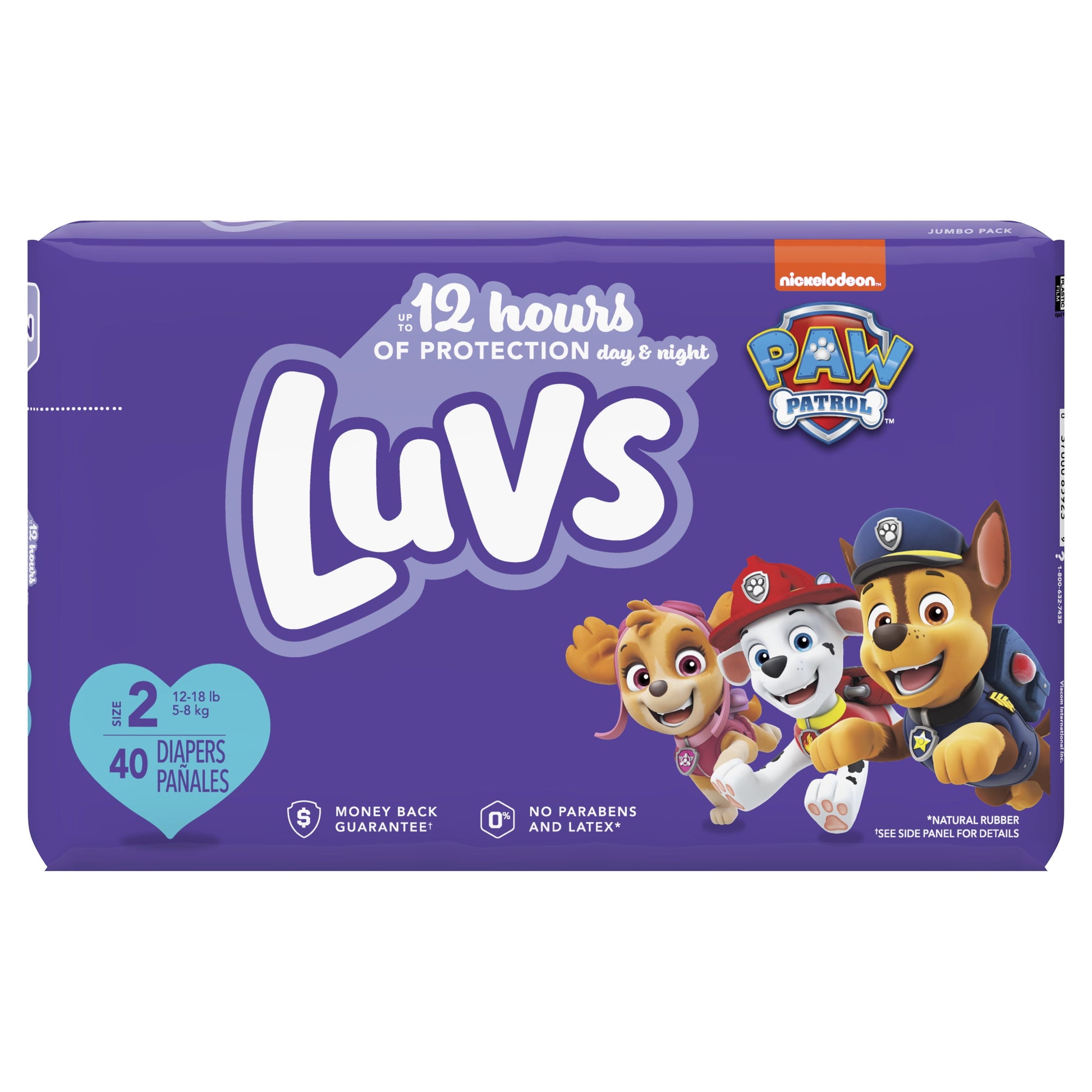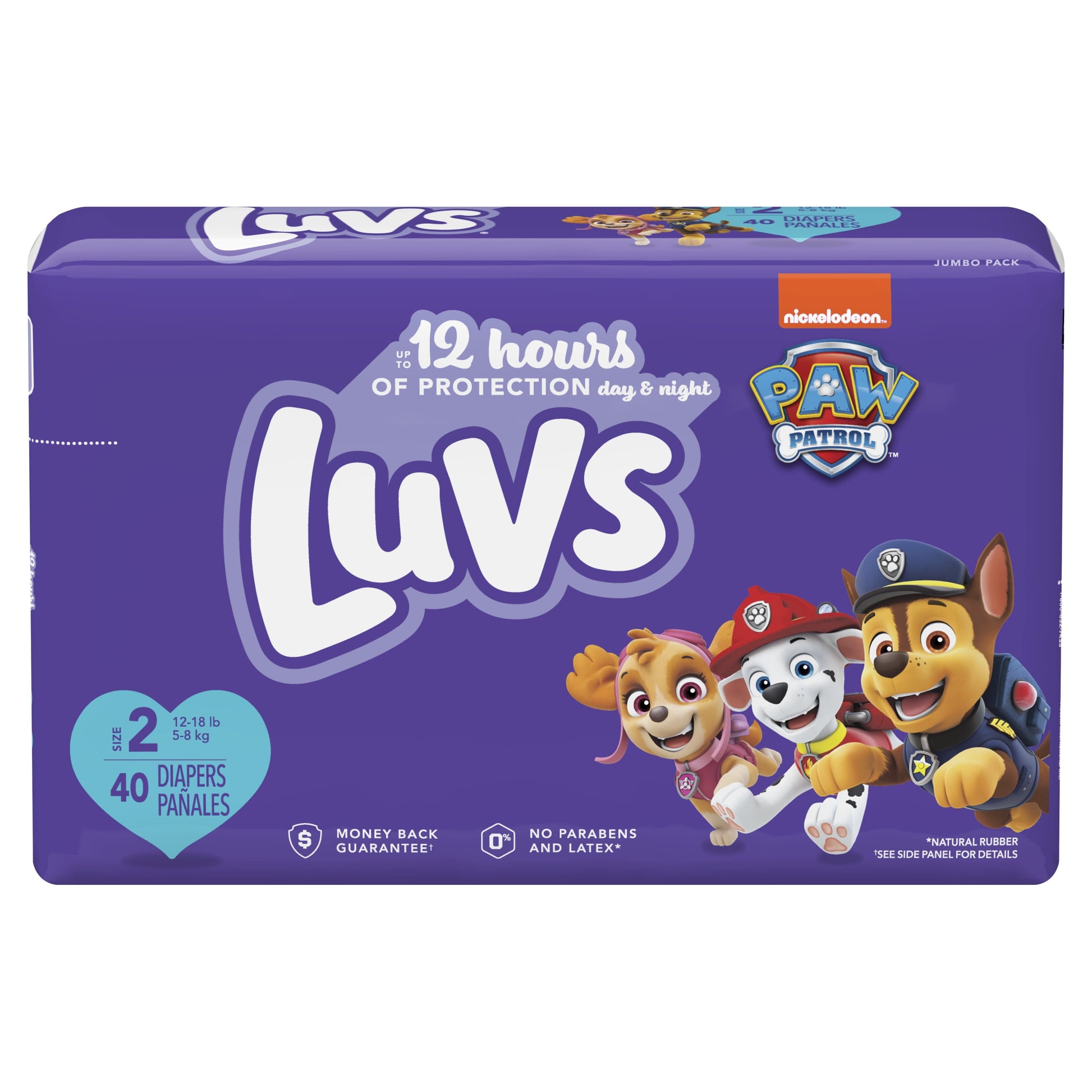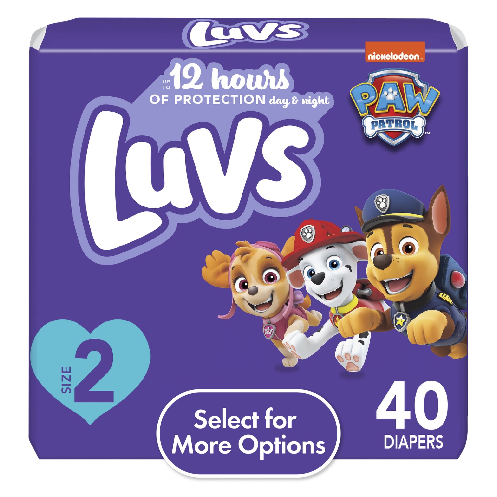No job is too big, no pup is too small! Luvs diapers with new Paw Patrol designs have your back-and their butts. Luvs now has up to 12 hours of protection, day and night. Like Chase and Marshall would say, our highly trained paws are at your service. And diaper leaks? We're on the case with nonstop leak protection. Luvs Triple Leakguards absorb quickly to help stop diaper leaks before they happen. But our leak protection doesn't stop there. Secure cuffs and stretchy sides keep leaks locked in where they happen the most. Forget about cheap, leaky diapers and spend more time enjoying this ride known as parenting. 40 count
