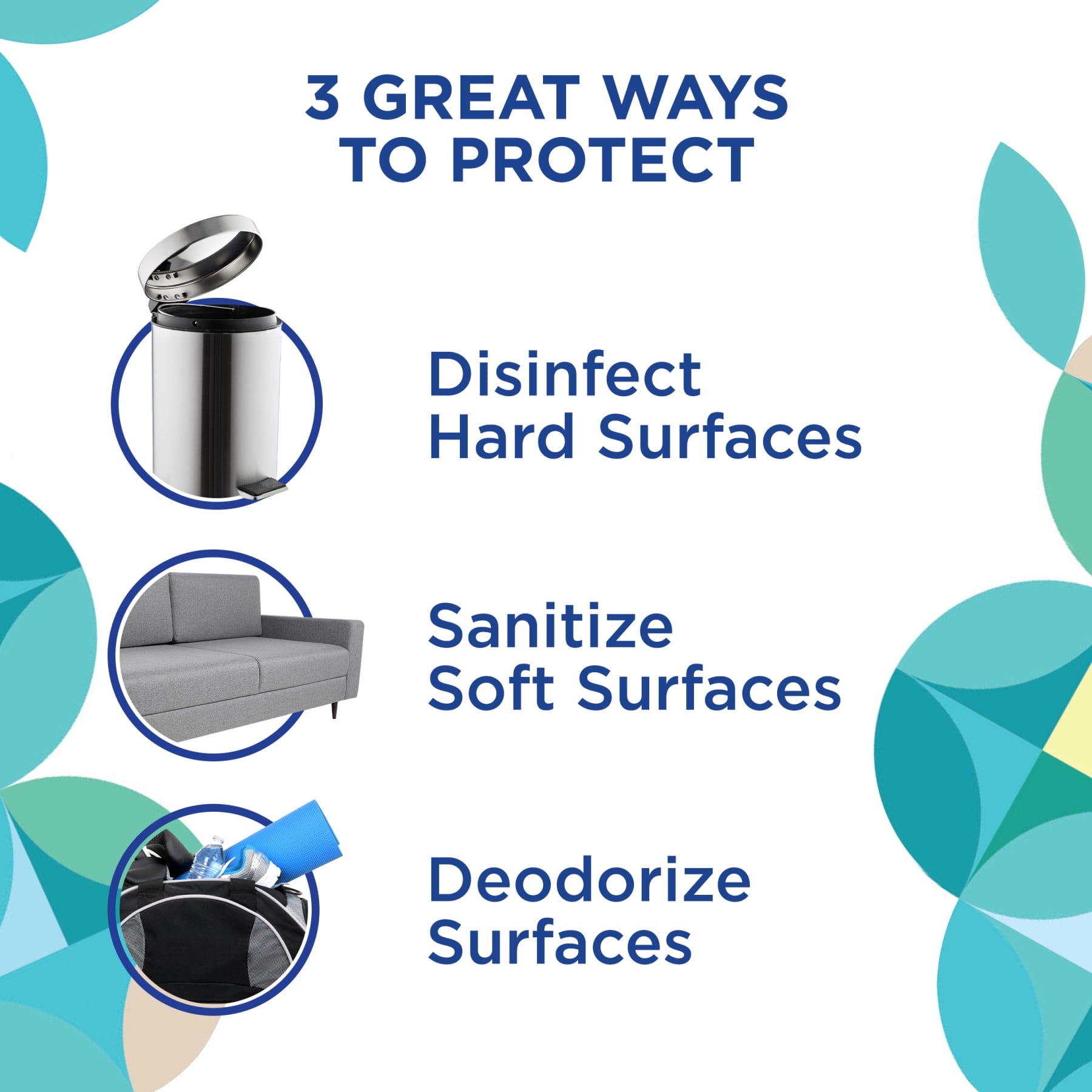 Kills 99.9% of viruses and bacteria**​(**when used as directed)​. Disinfects hard non-porous surface and soft surfaces​.