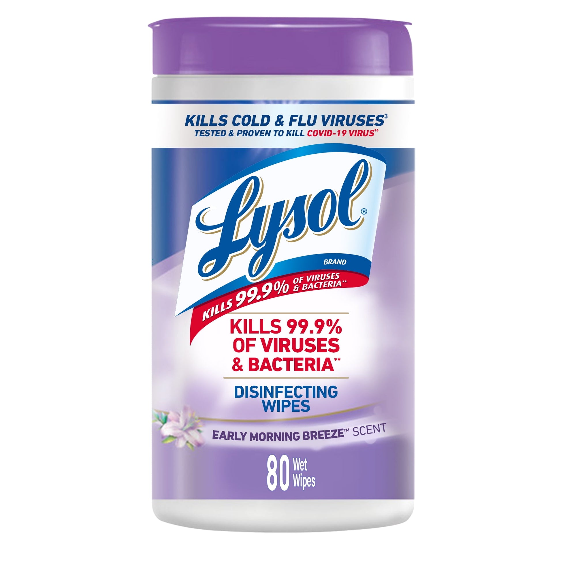 DISINFECTING WIPES FOR CLEANING: Disinfect and deodorize with the fresh smell of Early Morning Breeze Lysol Disinfecting Wipes. Safely wipe down spills and remove allergens, including pet dander, dust mites, and pollen.
