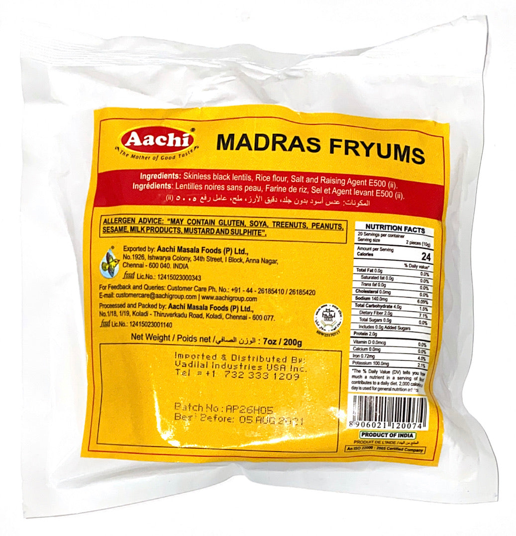 Papadam, (also known as papad in North India or appadam in Telugu, appalam in Tamil, and pappadum in the rest of South India; spellings vary) is a fine Crisp disc-shaped Indian meal usually based on a dough Seasoned made in black gram (Urad flour), fried or cooked with dry heat. flours made from other sources such as lentils, chickpeas, rice or potato, can be used. Papadams is generally served as a complement to a meal in India, or as a snack or appetizer, sometimes with toppings such as onions, chopped carrots, sauces, and other condiments and sauces. In certain parts of India, papadums that have been Dried but not Precooked are used in curries and vegetable dishes.