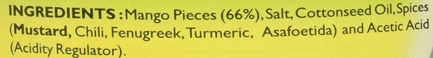 Mangoes hand picked from the Mango province of Konkan CoastFlaming red Byadgi Chillies, Methi, Mustard and HingBlended to bring to mind the heavy aroma of genuine Marathi Lonche