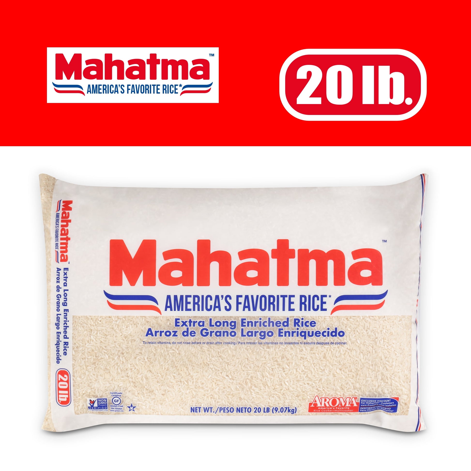Mahatma White Rice is a traditional family favorite extra-long rice so it releases less starch during cooking and helps you achieve that perfect separate but fluffy texture. This rice pairs excellently with a wide variety of dishes for breakfast, lunch, or dinner, and is Non-GMO, free of MSG, and contains no added preservatives.