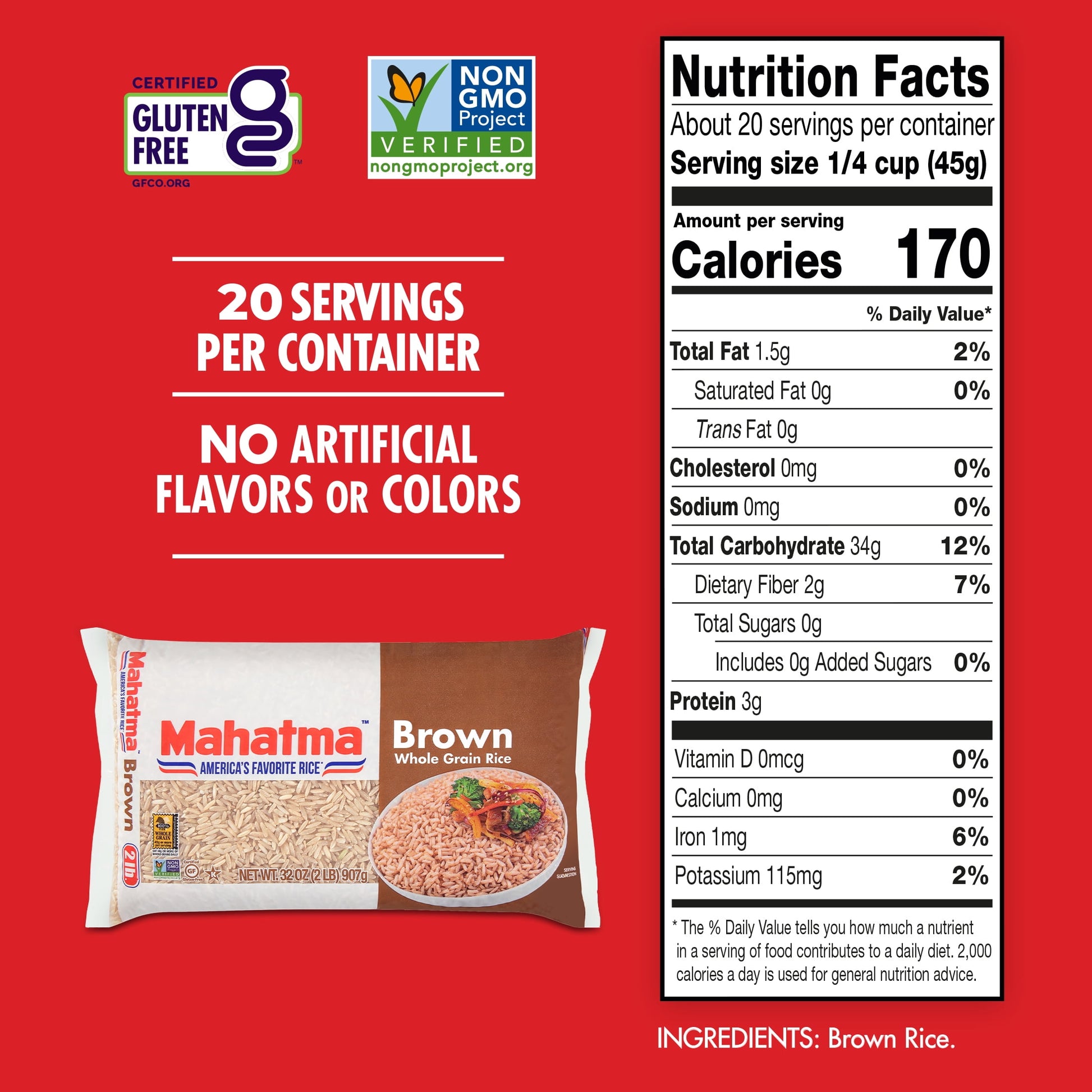 Our Mahatma Whole Grain Brown Rice has a subtle nutty taste and chewy texture, making it ideal for your favorite rice recipes, from fried rice dishes to rice and beans dishes. Mahatma Brown Rice has a signature brown color with all of the whole grain benefits. It's sodium-free, cholesterol-free, and made without MSG or preservatives. Mahatma Whole Grain Brown Rice is Non-GMO Project Verified, Certified Gluten-Free, and Certified Kosher by Star-K.
