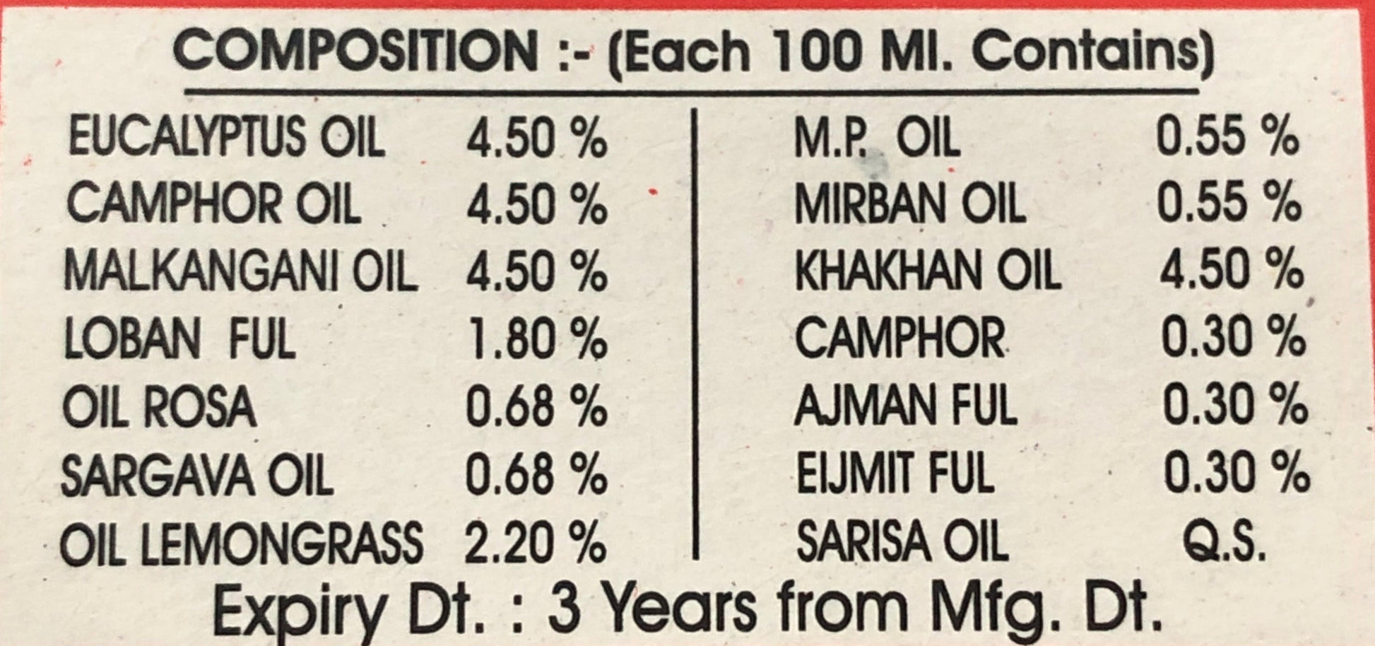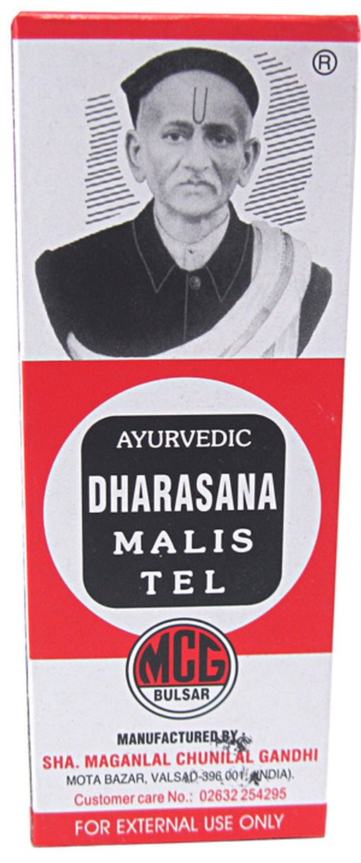 You are buying a 65 ml bottle of Ayurvedic dharasana massage oil (since 1934) Product information for external use only: Massage with ayurvedic dharasana oil can give you quick relief. Arthritis and joint pain, excruciating sciatica vein pain knee veins, back pain pain without Wound sprain overlapping veins Numbing of limbs benumbing of hands and feet Shooting body pain becoming cold due to reduction in temperature of the body How to use: Take a couple of drops in your hands and massage twice or Thrice a day. Composition: Each 100 ml contains the following Ayurvedic oil / Herbs
