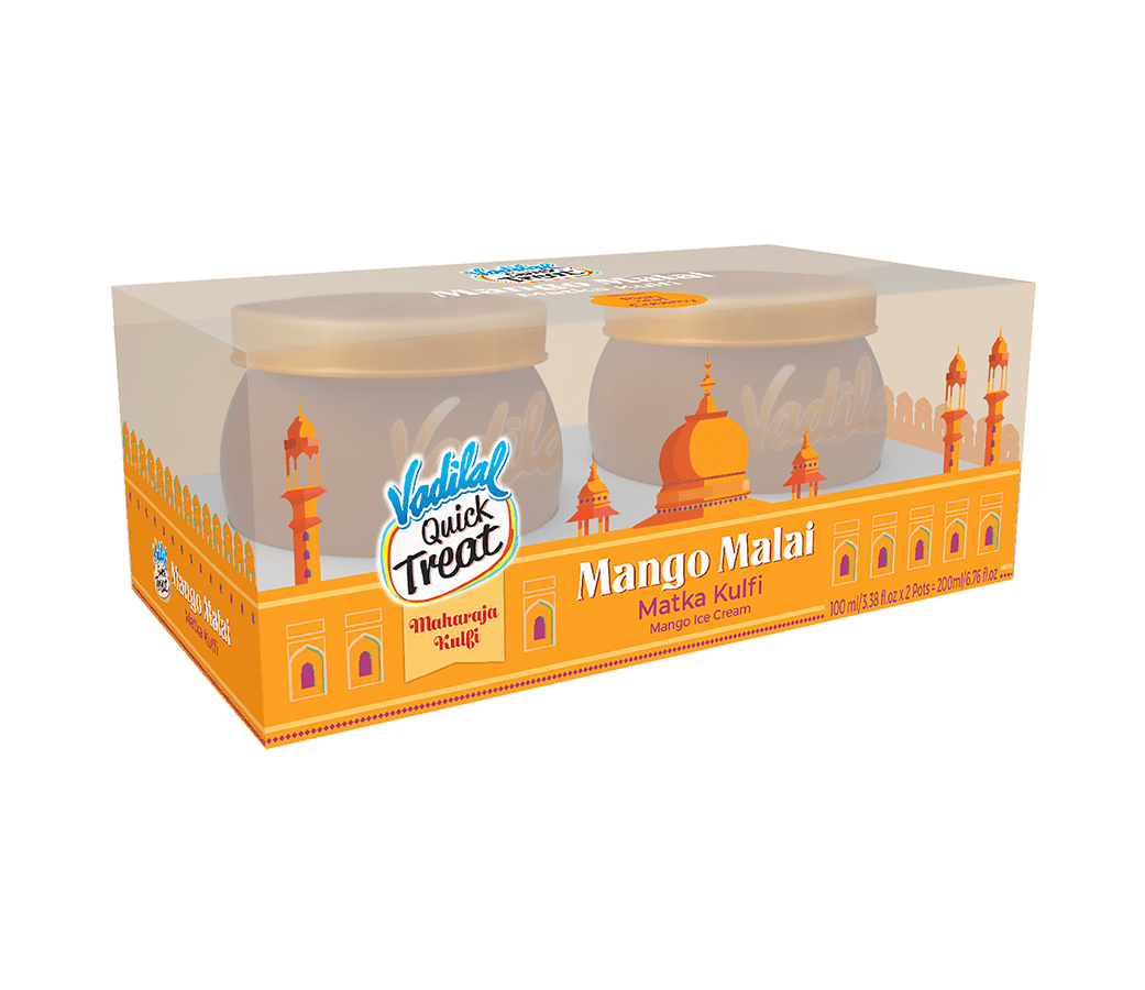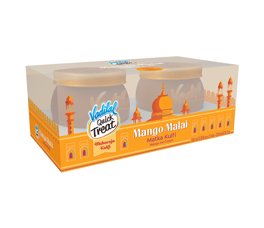 Vadilal Quick Treat Mango Malai Matka Kulfi Ice Cream 3.38 fl oz/100ml x 2 Pots