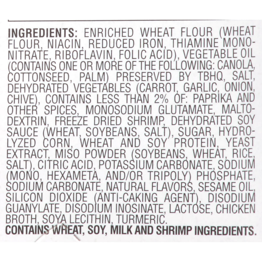 Maruchan Instant Lunch Hot & Spicy Shrimp Flavor Noodle Soup, 2.25 oz Shelf Stable Cup. America's finest Ramen Noodle soups. Ready-to-Cook and eat as a snack or add meat and veggies to make this a complete meal. This is a great item you can cook for a fast and convenient lunch or dinner as well eat on the go. It can be enjoyed as a hot snack or delicious meal anytime and ready to eat in only 3 minutes. Please follow package cooking instructions for best results. Maruchan strives to provide quality that will enhance the lives of our customers with better products and services. With an endless effort in product development and customer service, we pursue the health and happiness of our customers and bring Smiles to all around the world.