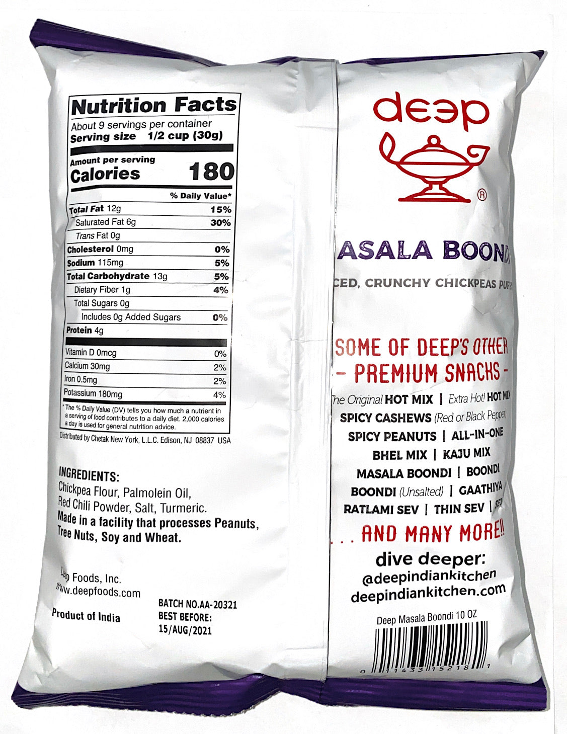 The Masala Boondi by Deep is a small fried ball of kiss. It can be used to make boondi raita or mix into any bhujia or appetizer. It is a crunchy and chopped appetizer.