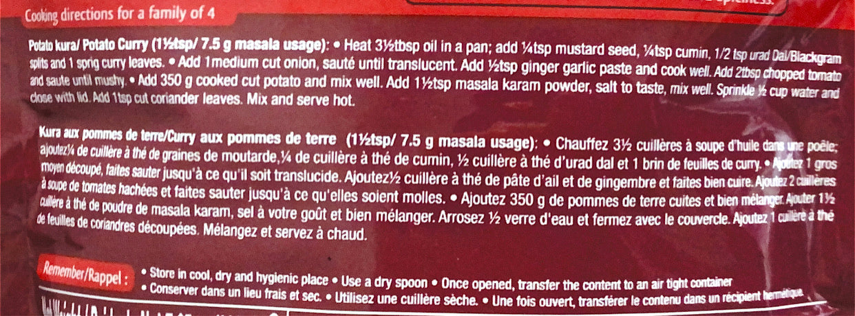 MTR Masala Karam Powder 200 gm | Contains a balanced blend of Red chili , Garlic, Coriander, Salt, Cumin, Curry leaf, Refined Palmolive Oil, Dehydrated Onion flakes & Spice extracts. This masala power can be used to curries, fried rice and in many North Indian dishes to give an authentic flavor of India